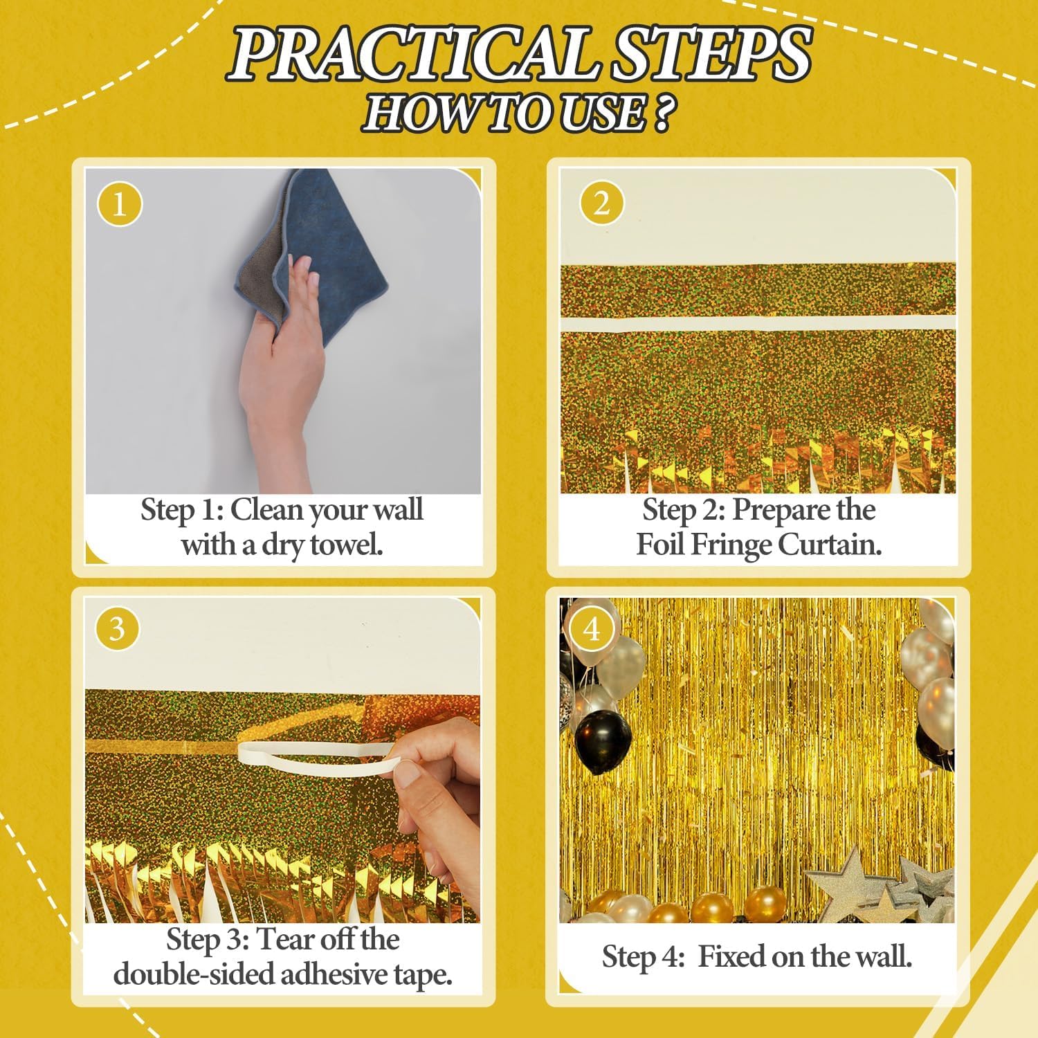 - 【3 Sets of Foil Fringe Curtains】Each package includes 3 sets of 3.3x8.2 ft foil fringe curtains, providing enough length to decorate your party with ease. Perfect for creating a stunning backdrop for any occasion.