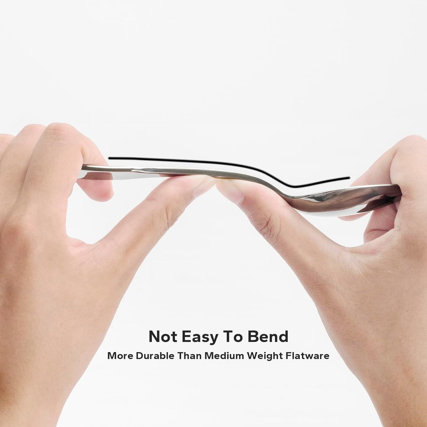 - MATERIAL: This heavy weight flatware set is made with 18/0 stainless steel.It has a thickness of 2.5-2.8mm specification which is more durable than medium weight flatware, not easily bent, and makes for a nice presentation