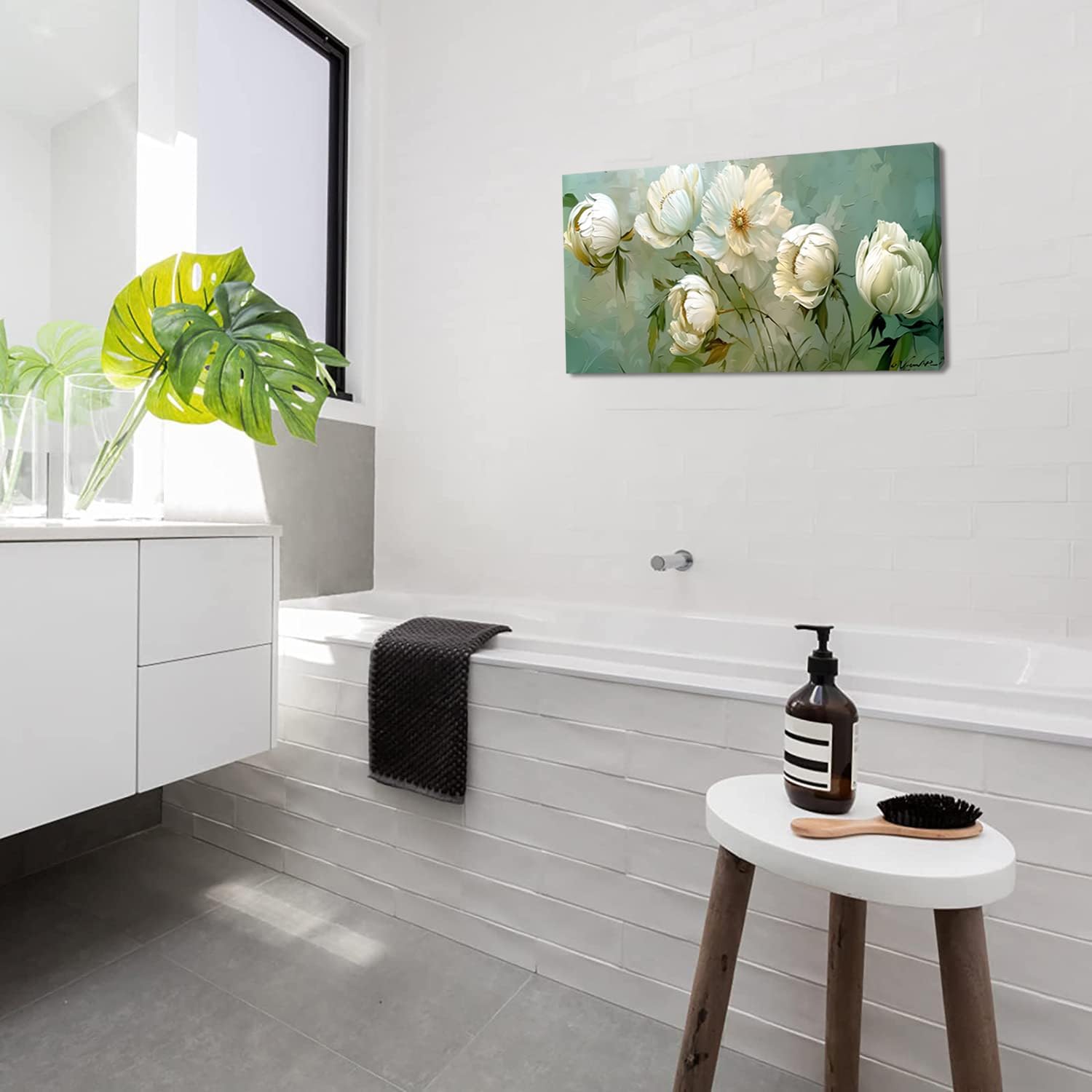 LASMOND Blooming White Flowers Plants Wall Art Decor Artwork for Bedroom (20x40 Inches)