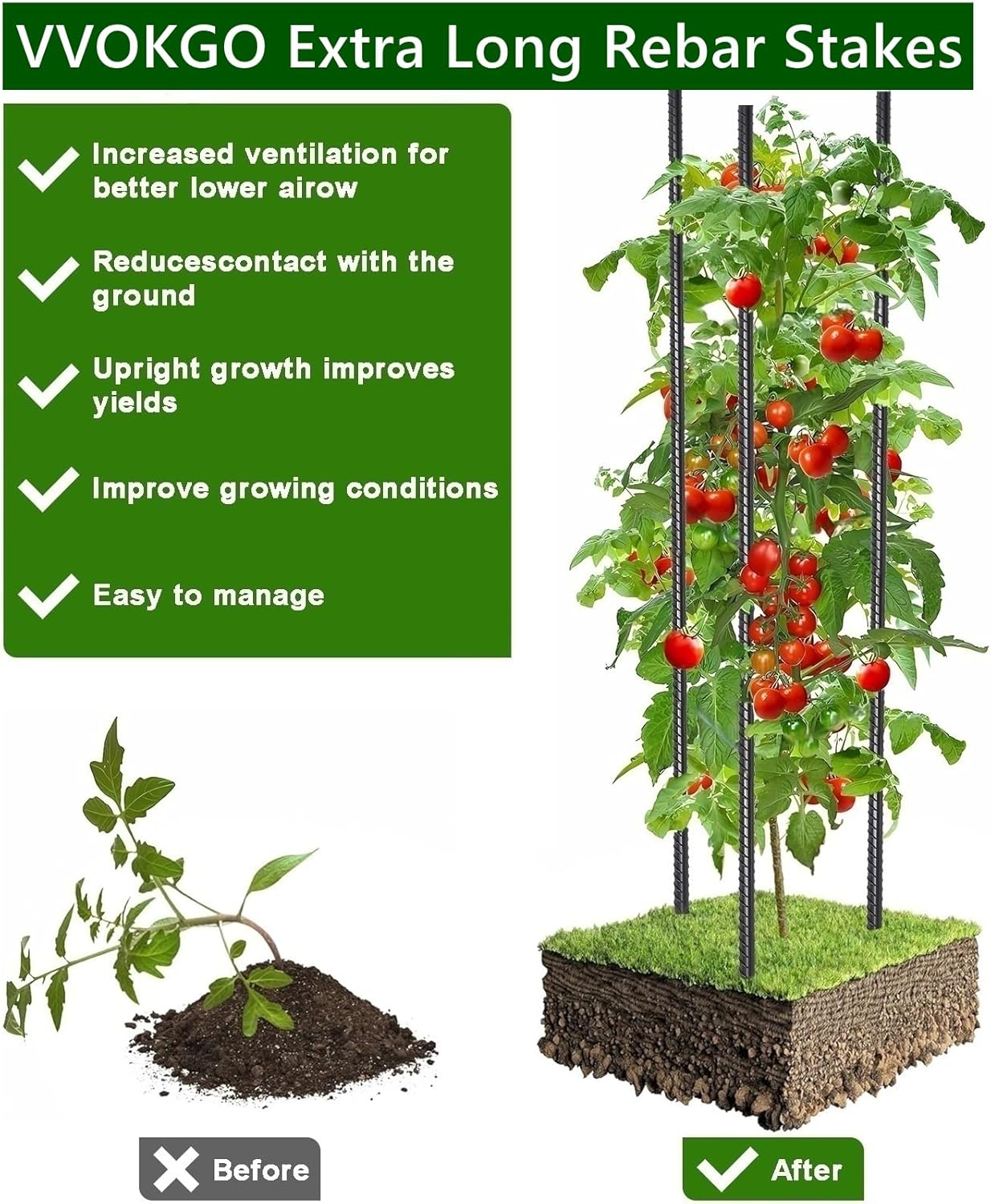 - Easy Installation - VVOKGO sturdy plant metal sticks support stakes with chisel pointed end can be used for hard clay and rocky soils, makes penetrating and removal easily. The straight rebar stakes can be penetrated deeper into the ground