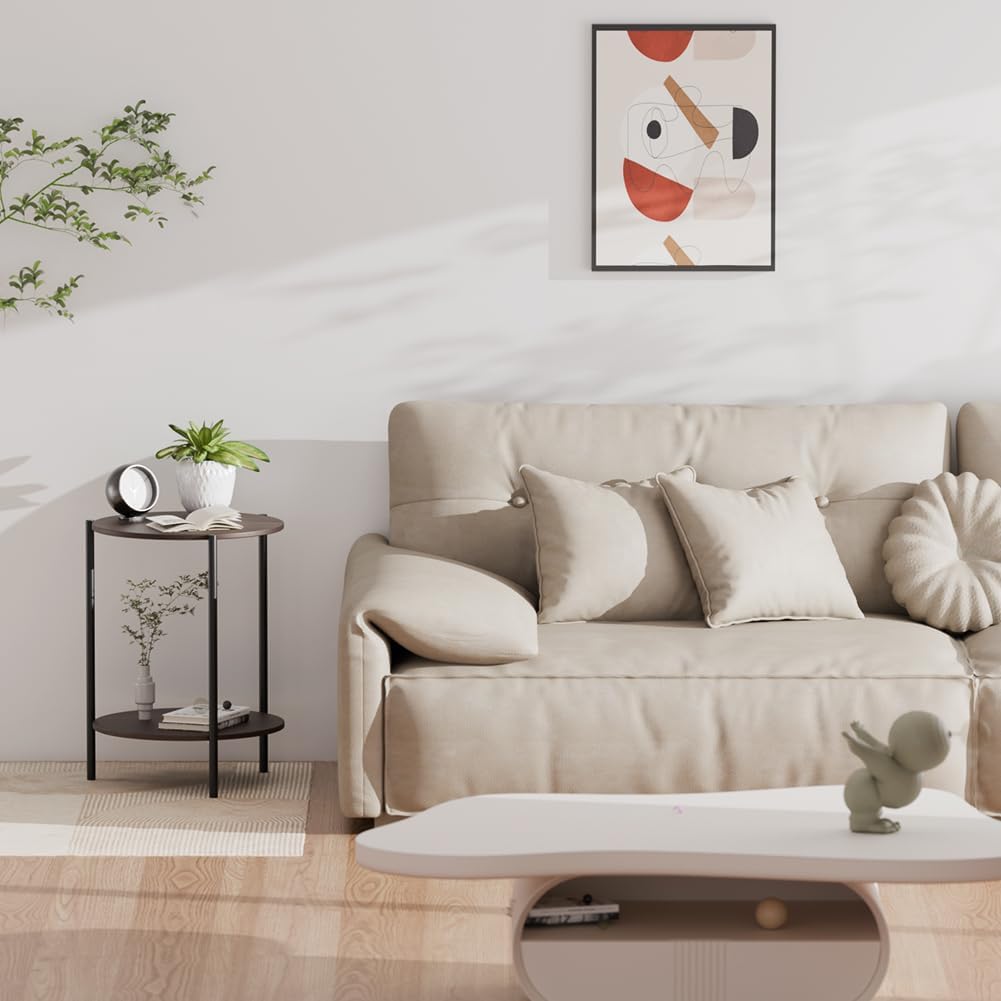 - 【2-Tier Small Round Table】: This exquisite wooden side table features a two-tier open shelf design, which is convenient for placing small items in the living room, such as cups, books, tissues and toys. The 15.75” shelf provides ample space to easily organize magazines and toys, keeping your space neat and elegant.
