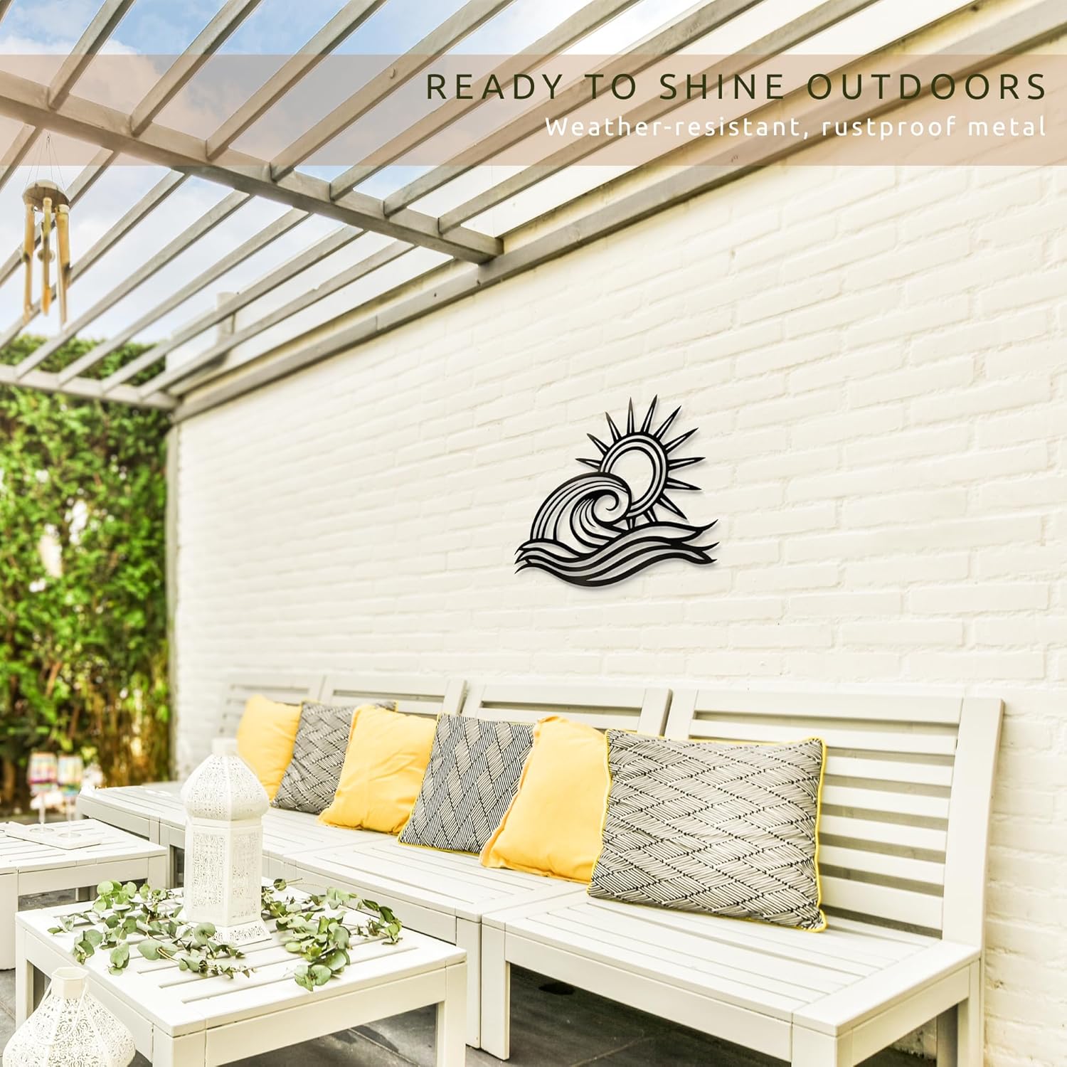 - STYLISH COASTAL DESIGN: Featuring an intricate ocean wave and sun motif, this coastal wall sculpture adds a touch of nautical elegance to any space. Its sleek, modern design complements various decor styles, making it a versatile addition to your home or garden.