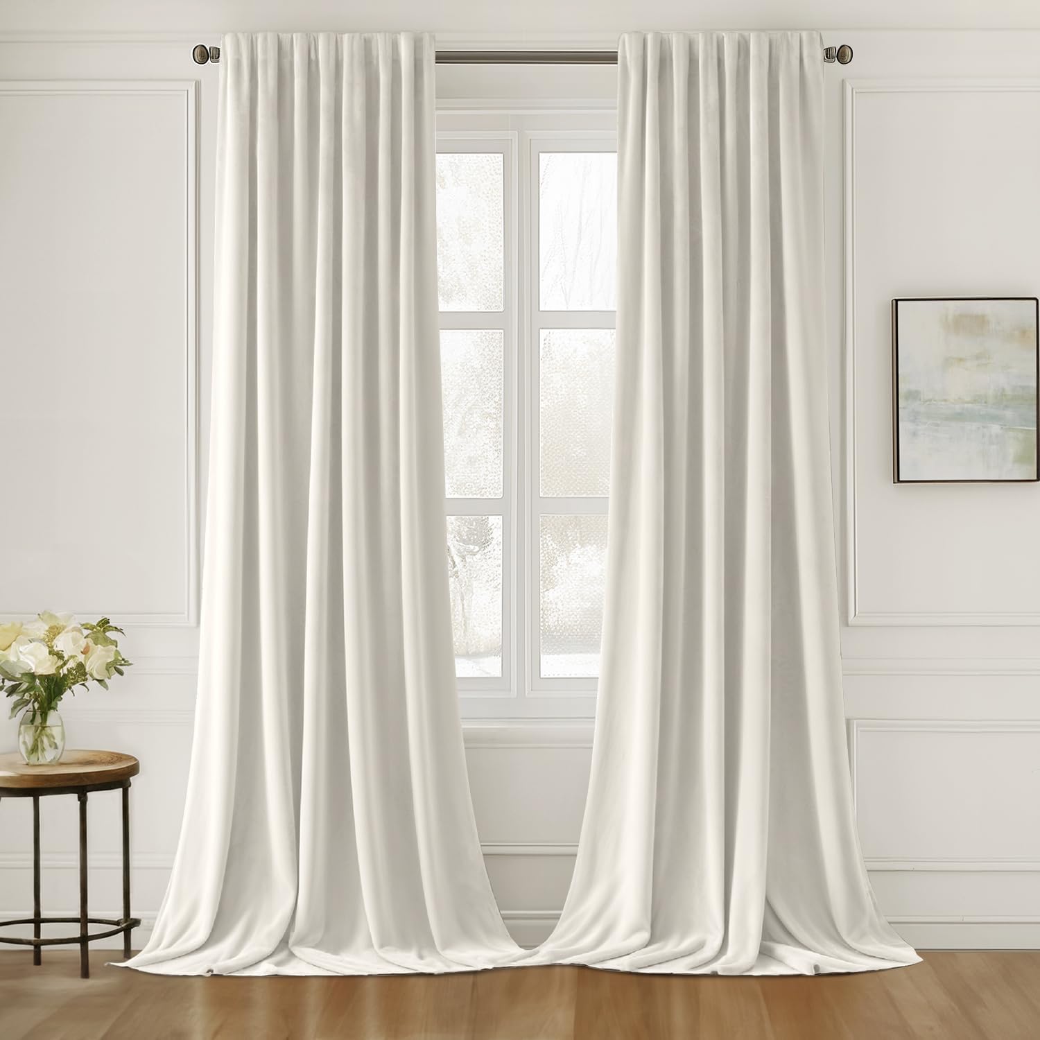MIULEE Ivory White Velvet Curtains 84 inches Long 2 Panels - Luxury Pinch Pleated Room Darkening Window Drapes for Bedroom Living Room Thermal Insulated Super Soft, Back Tab Rod Pocket Elegant Decor
