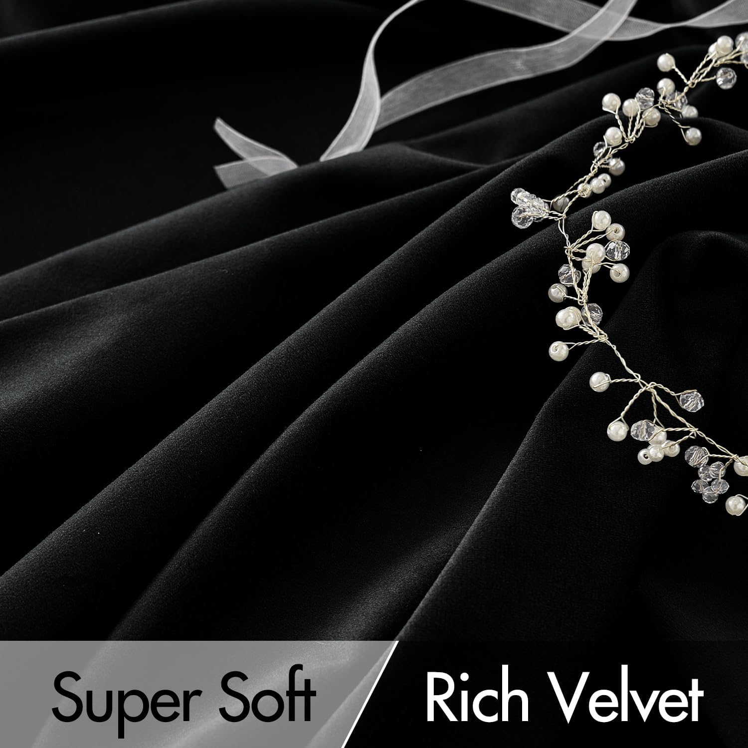 MIULEE Black Velvet Curtains 96 inches Long 2 Panels - Luxury Pinch Pleated Room Darkening Window Drapes for Bedroom Living Room Thermal Insulated Super Soft Blackout, Back Tab Rod Pocket