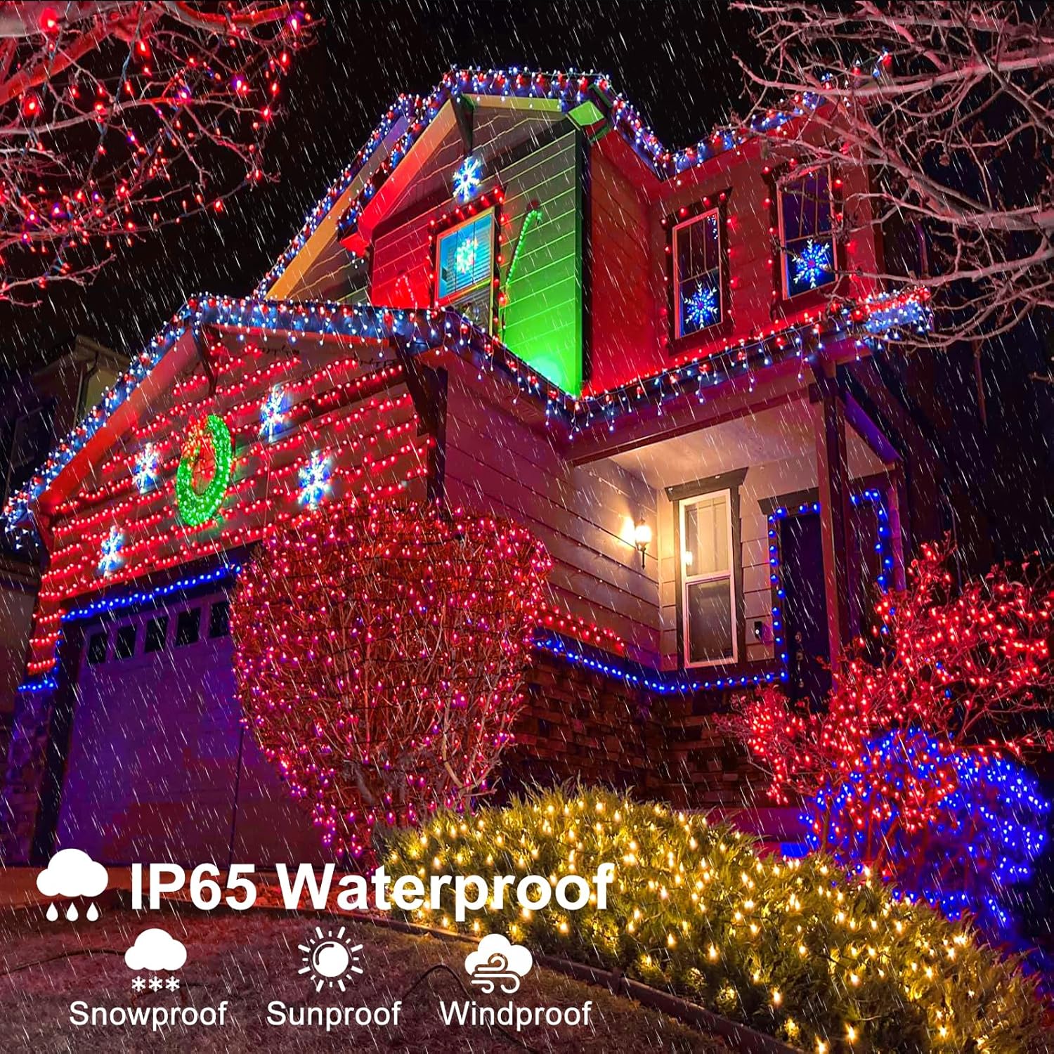 - [Ideal for Holiday Decorations] - The Christmas lights outdoor with green wire blends well with the night, perfect for indoor and outdoor decorations, such as trees, classrooms, yards, gardens, patios, walls, balconies, fences, porches, roofs, lawns and more, creating a joyful and festive atmosphere.