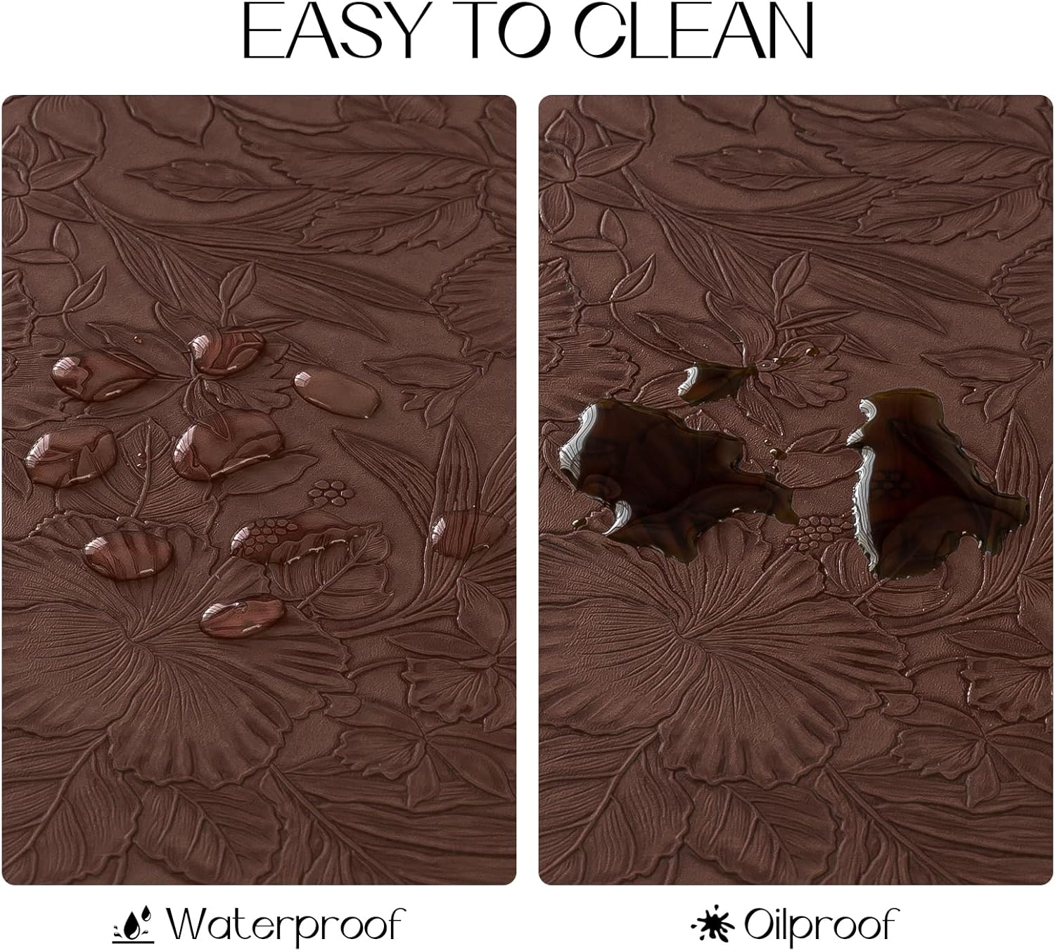 Romanstile Vinyl Placemats Set of 4-12 X 18 Inch - Heat Resistant Non-Slip Embossed Floral Place Mats 100% Waterproof Oilproof Wipeable Faux Leather Table Mats for Kitchen/Dining/Party, Brown