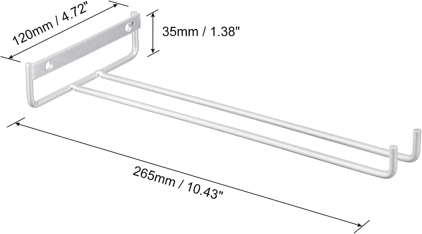 - [Wine Glass Holder] Material: Iron; Color: Silver; Weight: 678g; Size: 265x120x35mm/10.43"x4.72"x1.38" (LxWxH); Thickness: 5mm/0.2"; Surface Treatment: High-Temperature Paint.