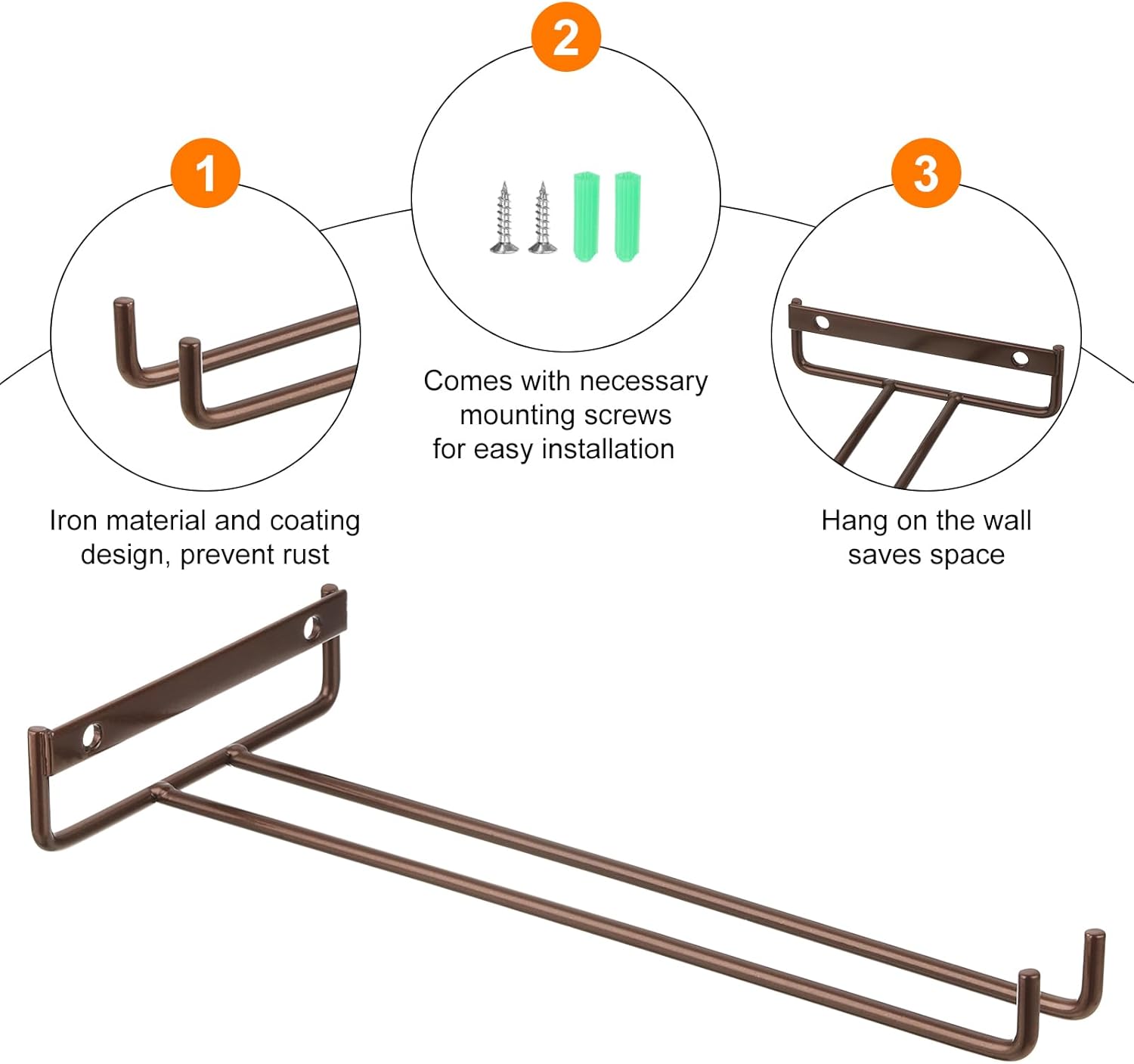 uxcell 5Pcs Wine Glass Rack, 10.43 Inch Iron Wine Glasses Rack Under Cabinet Stemware Rack - Wall Mountable Wine Glass Holder Storage Hanger for Bars Coffee Restaurants Kitchens, Bronze