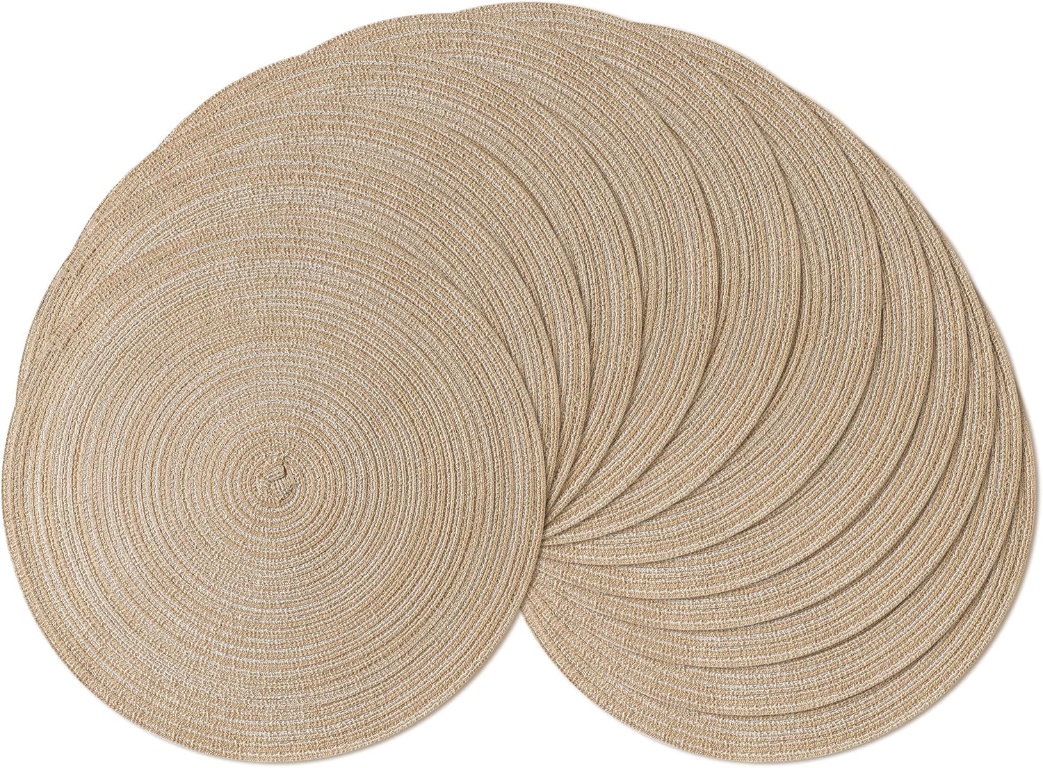Leetaltree Round Placemats Heat and Slip Resistant Cotton Table Mats, Washable Bohemian Placemats for Dining Tables (Beige, Set of 12)
