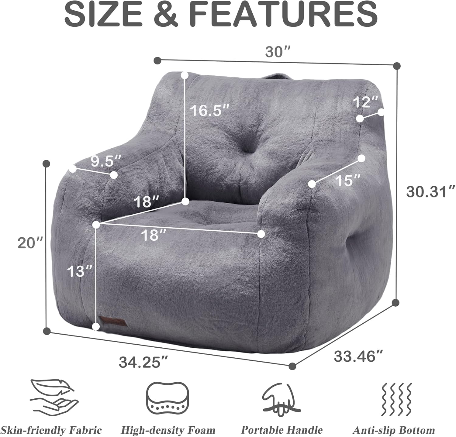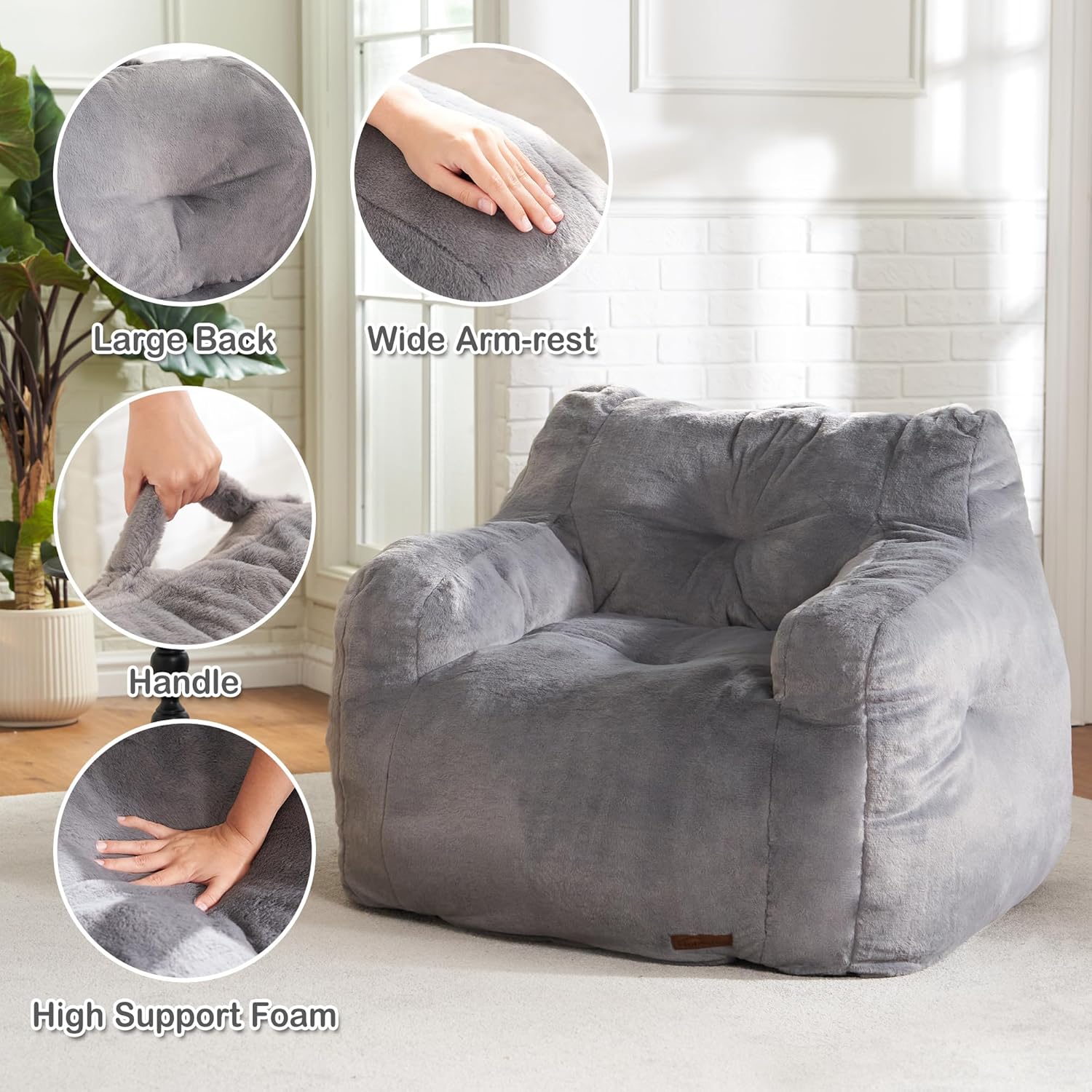 Hobestluk Bean Bag Chair for Adult Small Bean Bag Chairs with Arms Furry Beanbag Chair with Foam Filler Stuffed Bean Bag Sofa for Reading in Bedroom Living Room and Dorms(Grey)