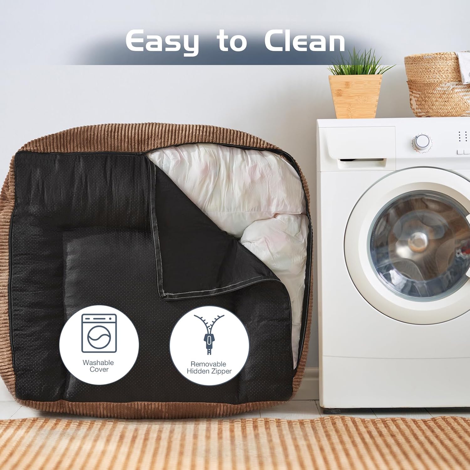 - 【EASY TO CLEAN】: The cover can be removable with zipper on the bottom and put in the washing machine, can be easily cleaned and replaced, which can keep the bean bag chair clean.If there are small stains, simply wipe gently with a soft wet towel.Feel free to contact us if you have any problem.
