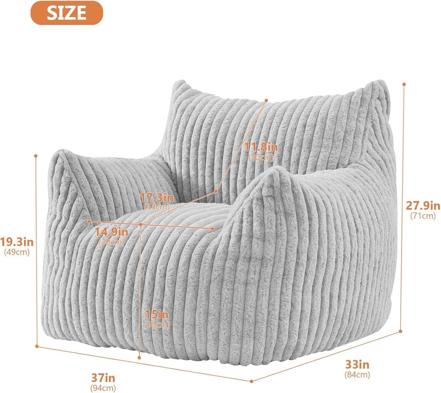 Giant Bean Bag Chairs for Adults with Filling Plush Fluffy Bean Bag Chairs for Teens with Armrests Comfy BeanBag Lazy Couch Sofa Chair for Bedroom Living Room Reading
