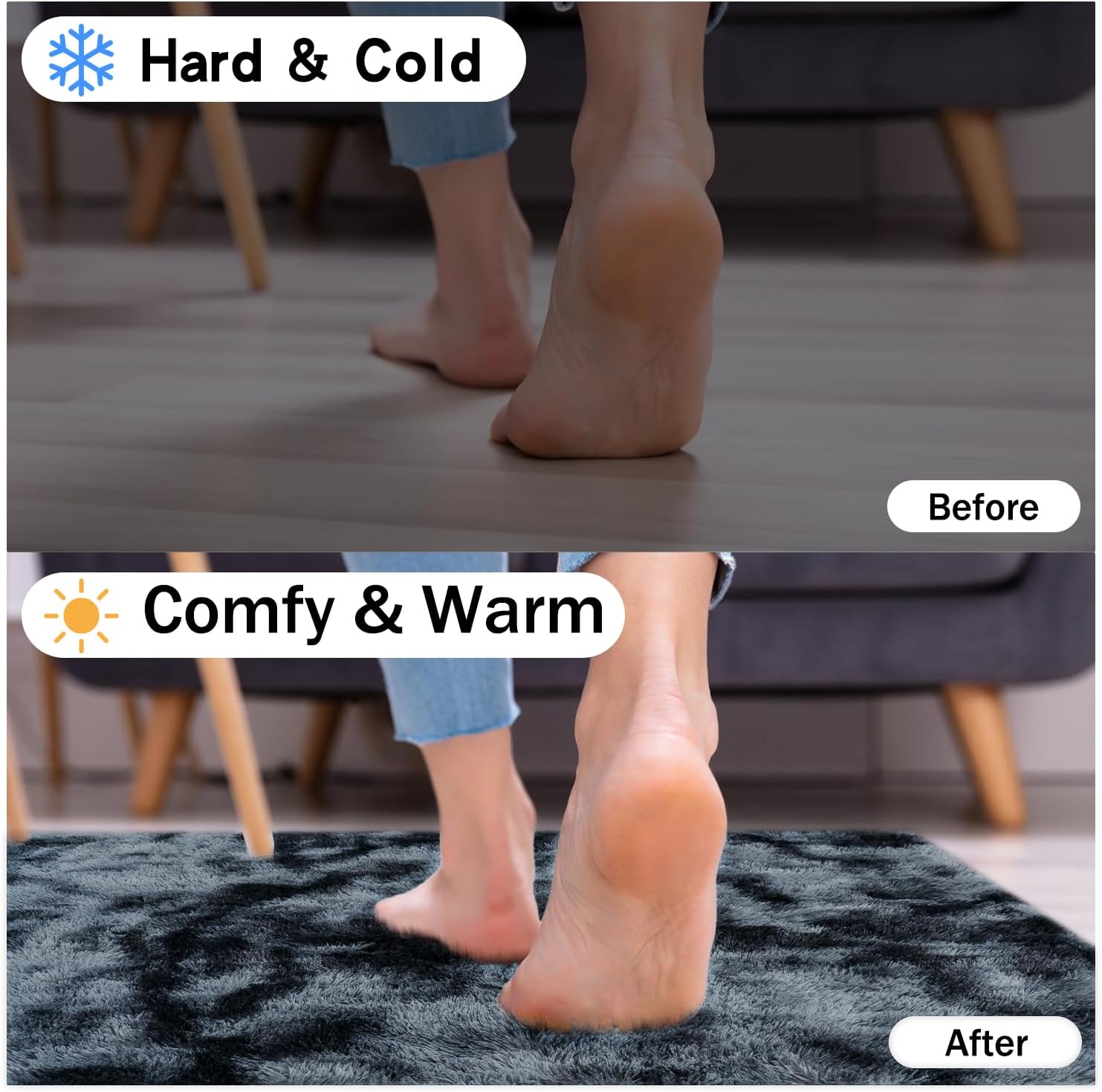 - Rezutan Area Rugs-Soft Fluffy Rug:The Rezutan shag area rug is crafted from durable microfiber, ensuring a plush and incredibly comfortable experience. Its 1.7-inch high pile surface is dense and velvety to the touch, while the 0.3-inch memory foam provides superior cushioning, isolating you from the cold ground and offering soundproofing benefits. Because of the plush fur on the Soft Fluffy rug, you’ll feel like walking on the clouds when walking barefoot on the large bedroom rugs.