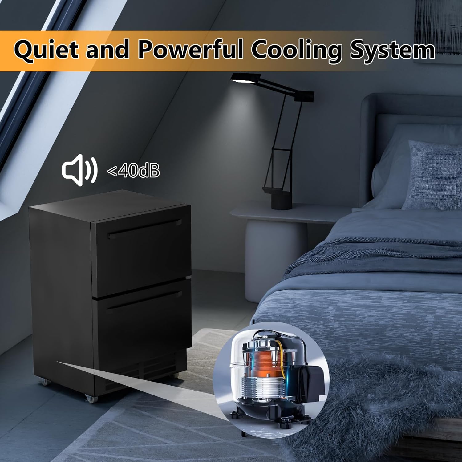 - Dual Drawer Design and Bottom Pulley: The drawers of this undercounter refrigerator feature a robust load-bearing capacity and convenient dual slide rails for easy access to your beverages. The bottom pulley design allows effortless mobility and adapts to various settings.
