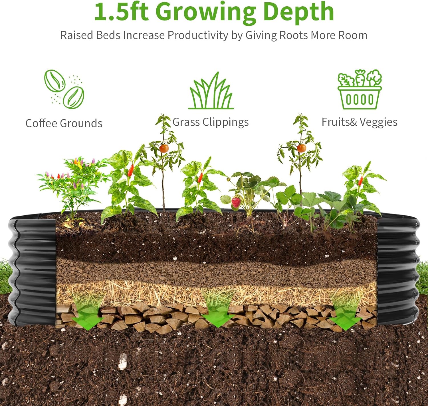 - Extra large capacity: The total dimensions of the raised garden bed are 96 "L x 48 "W x 18 "H and holds 359 gallons of soil. The extra large capacity provides plenty of growing space for planting vegetables, fruits, flowers and other plants.
