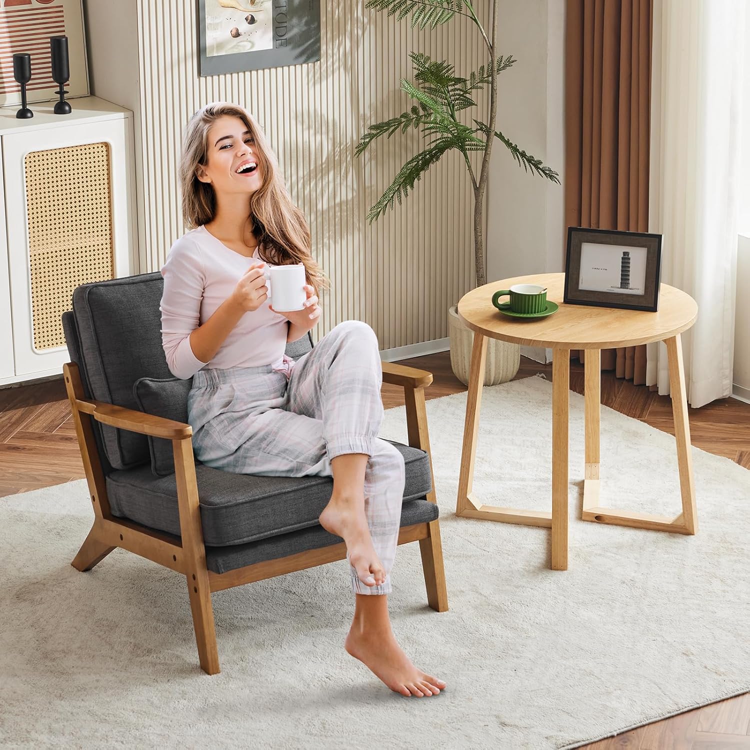 - High-Quality Materials - This cozy chair adopts a solid wood frame, and sturdy structure, and can bear up to 330 lbs. The seat cushion is made of high-density sponge and breathable linen fabric, comfortable and skin-friendly.