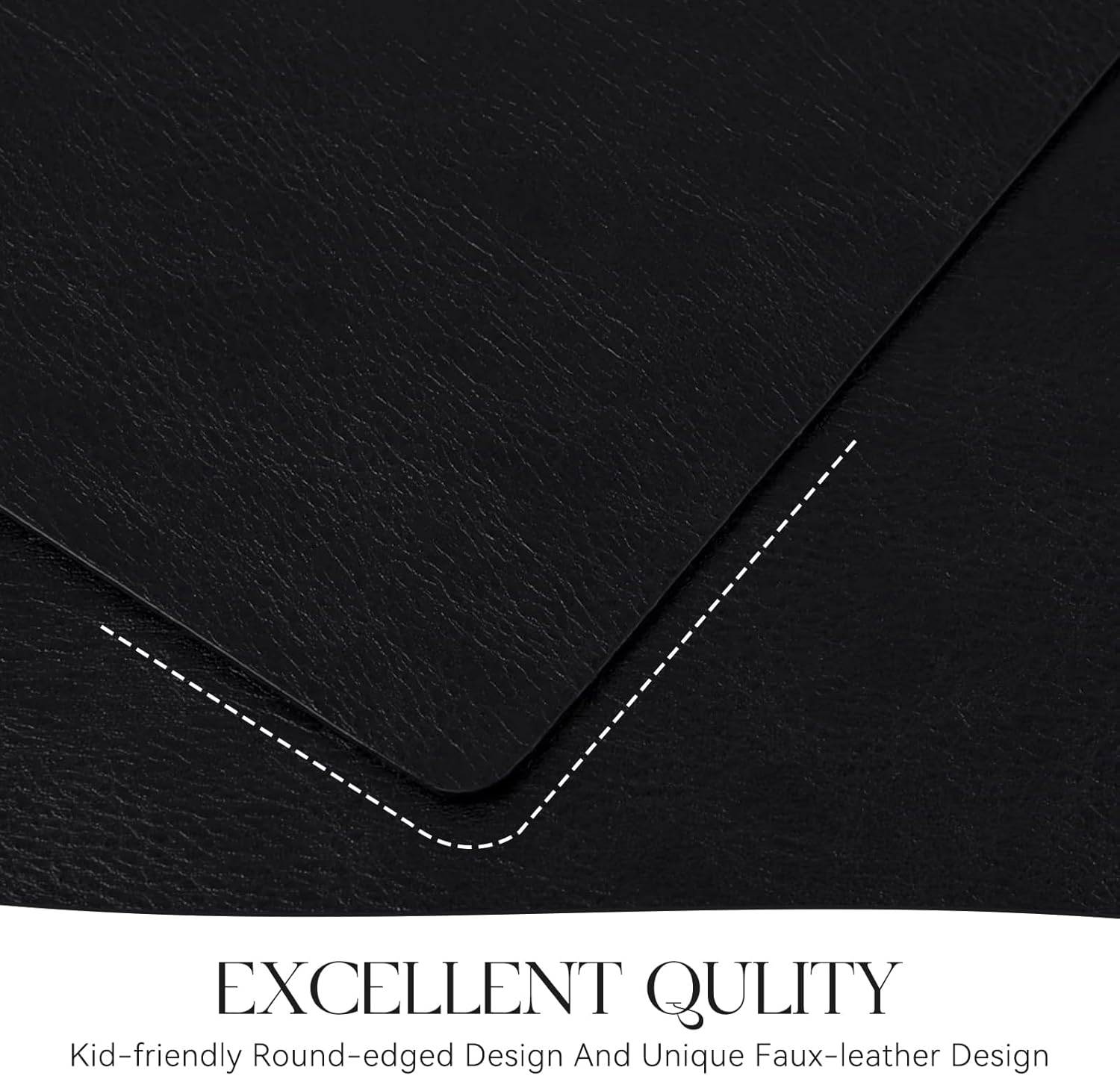 MOSAYT Vinyl Placemats Set of 6-12 X 17 Inch - Faux Leather 100% Waterproof Oil-Proof Wipeable PU Place Mats, Heat Resistant Reversible Table Mats for Kitchen, Dining, Outdoor (Black)