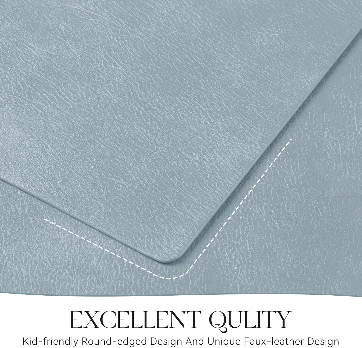 MOSAYT Vinyl Placemats Set of 4-12 X 17 Inch - Faux Leather 100% Waterproof Oil-Proof Wipeable PU Place Mats, Heat Resistant Reversible Table Mats for Kitchen, Dining, Outdoor (Light Grayish Blue)