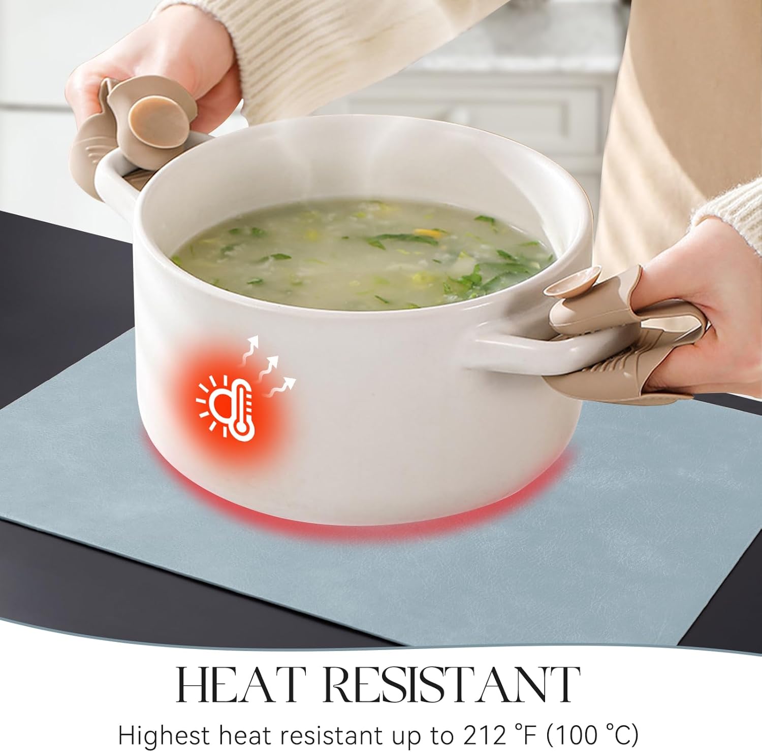 - PROTECT YOUR TABLE: Our placemats are 2mm thick and heat-resistant up to 212℉/100℃, which can protect your table from high temperatures and reduces noise from plates and flatware. It is an excellent choice to protect protect the surface of your dining table from hot dishes and liquid spills.