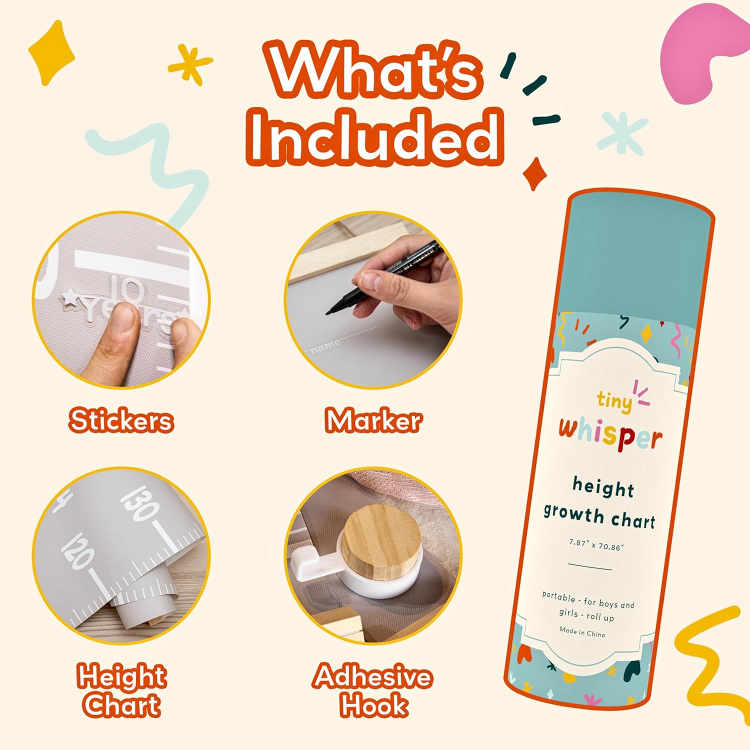 - Customizable Growth Chart for Wall: Make your child’s room unique with a personalized kids height chart. This growth chart for kids includes fun stickers, perfect for toddler room decor and a must-have for any baby room.