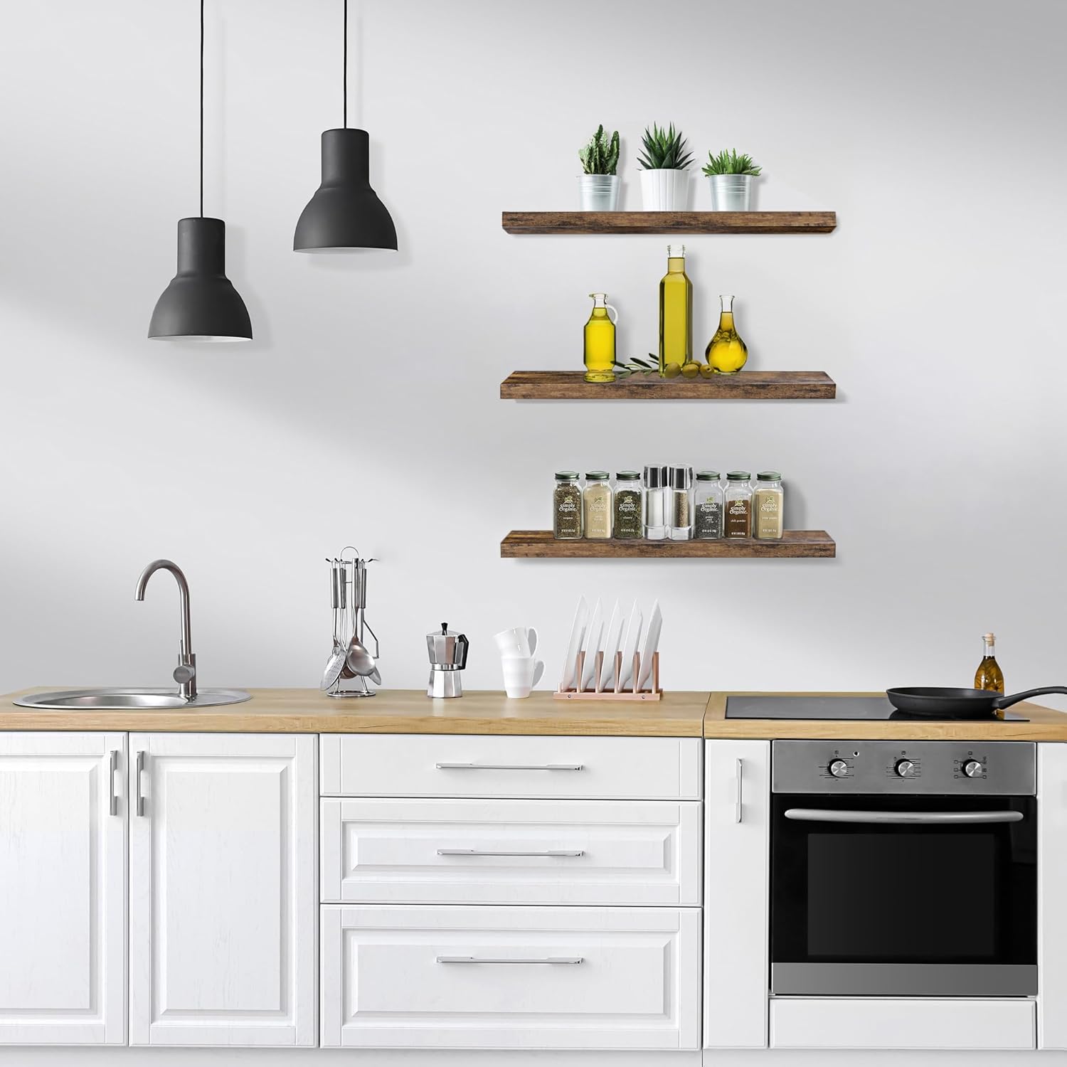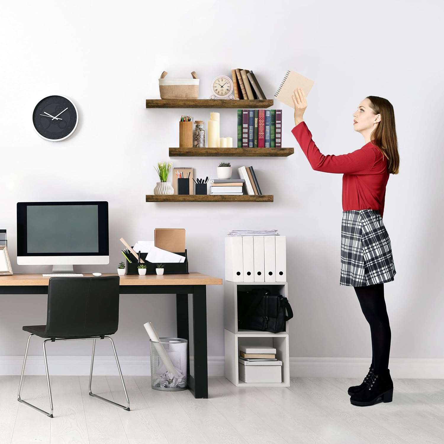 Sorbus Floating Shelves for Wall - 24" Bathroom Shelves, Wall Decor for Bedroom, Kitchen, Living Room, Home Decor & Book storage - Mounted Floating Shelf with Invisible Brackets (Rustic Brown, 3 Pack)