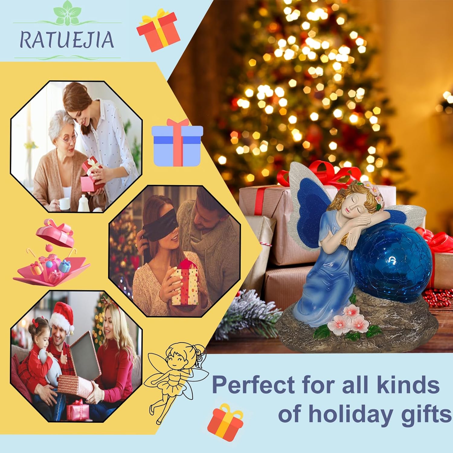 Fairy Garden Statue ,Solar Garden Decor ,Fairy Statue Outdoor with Glass Ball ,Waterproof Outdoor Decor,Suitable for Yard, Lawn ,Ideal for Holiday Giving(Blue)