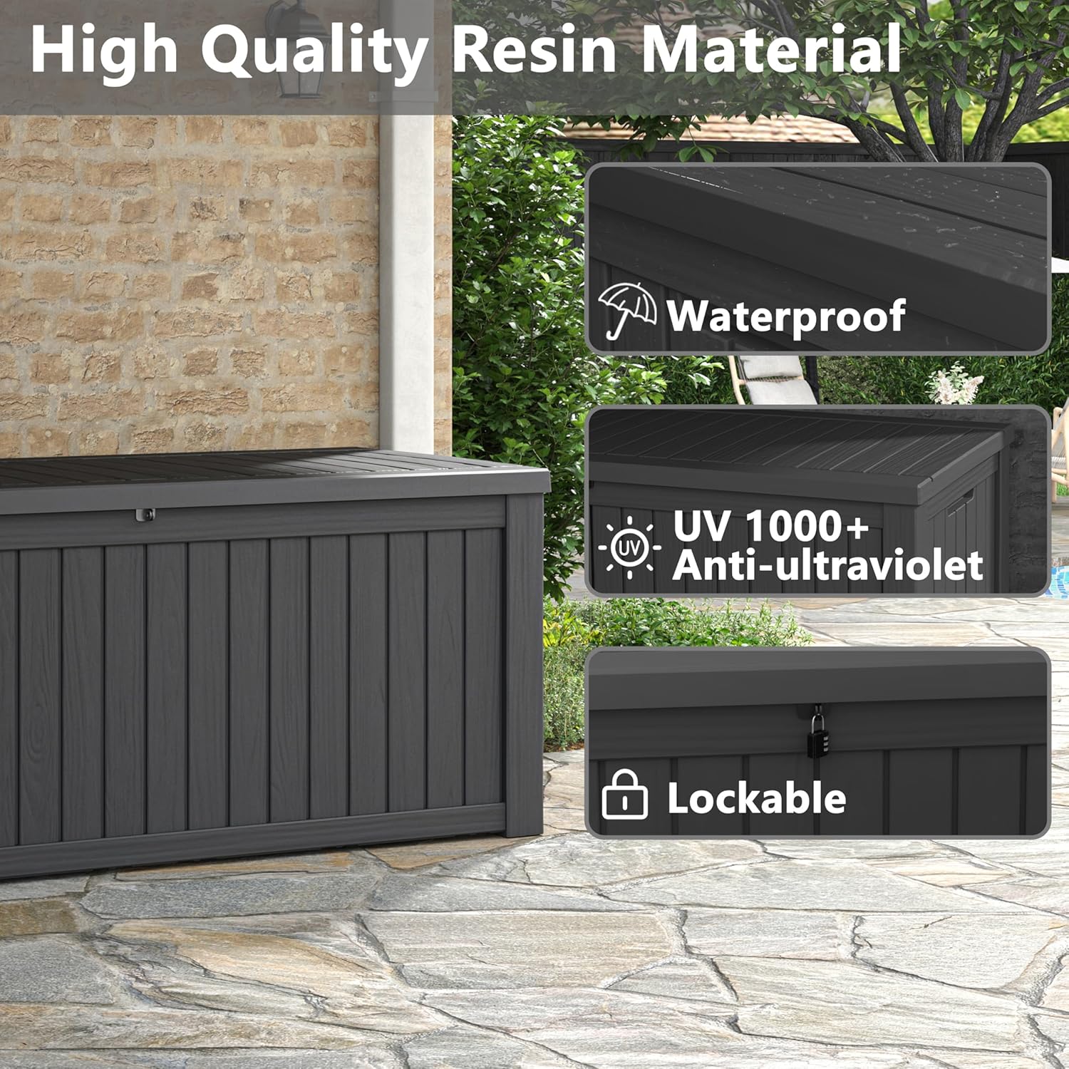 150 Gallon Resin Deck Box, Large Indoor and Outdoor Storage Box, Weatherproof and UV Resistant Outdoor Storage Box with Built-in Steel Beams for Patio, Cushions, Pool Supplies