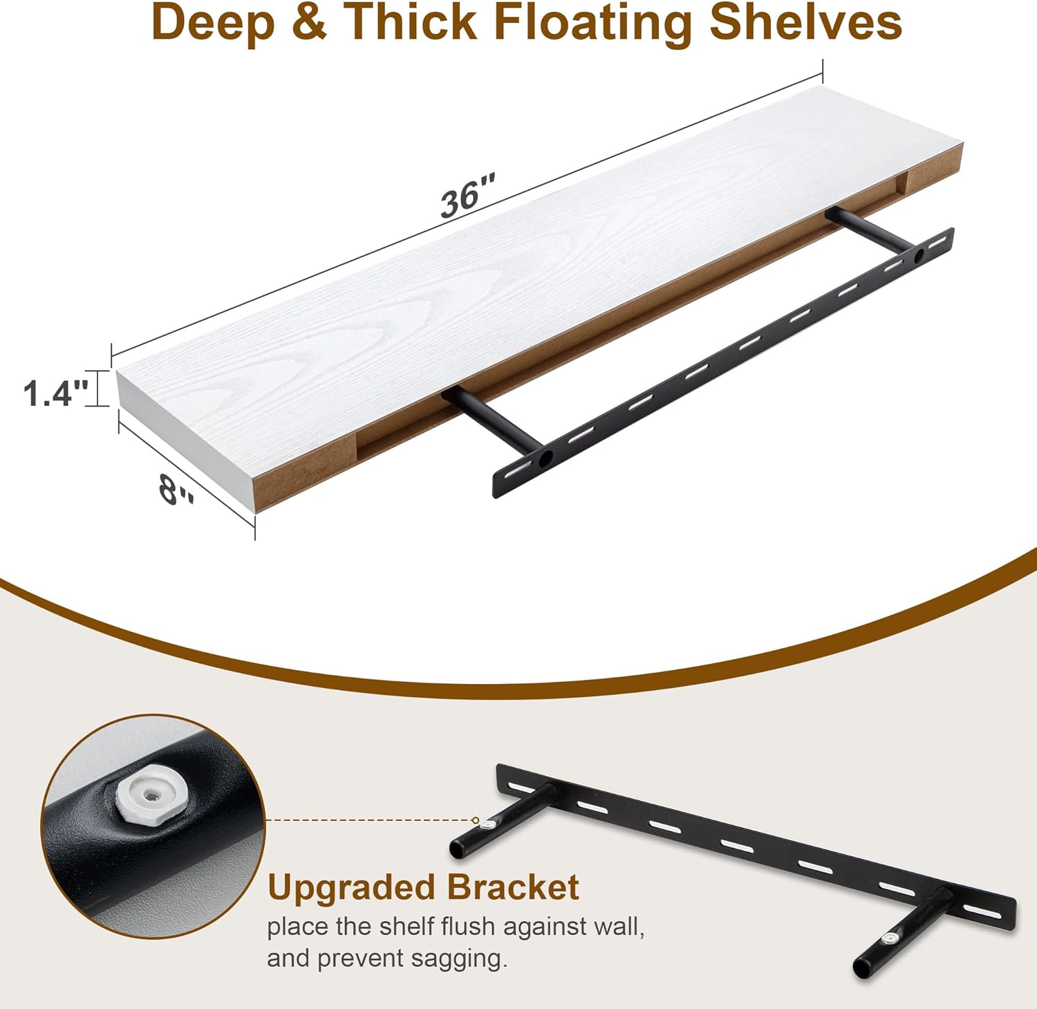 Fun Memories White Floating Shelves 36 Inch Long, 8 Inch Deep Floating Shelf for Wall, 36" W x 8" D Floating Shelves Set of 2, White Deep Wall Shelves for Bedroom, Living Room, Kitchen