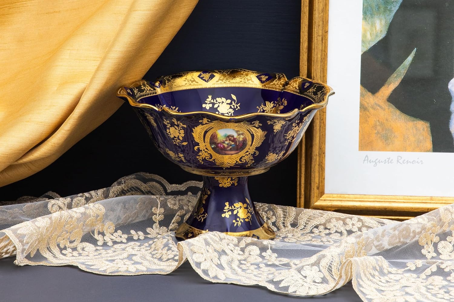 - Elegant Vintage Design: Perfectly crafted for your serving collection, the royalty porcelain blue fruit bowl on a stand (8 inch width x 6 inch height) adds a touch of vintage decor to any home, making it a stunning kitchen table centerpiece