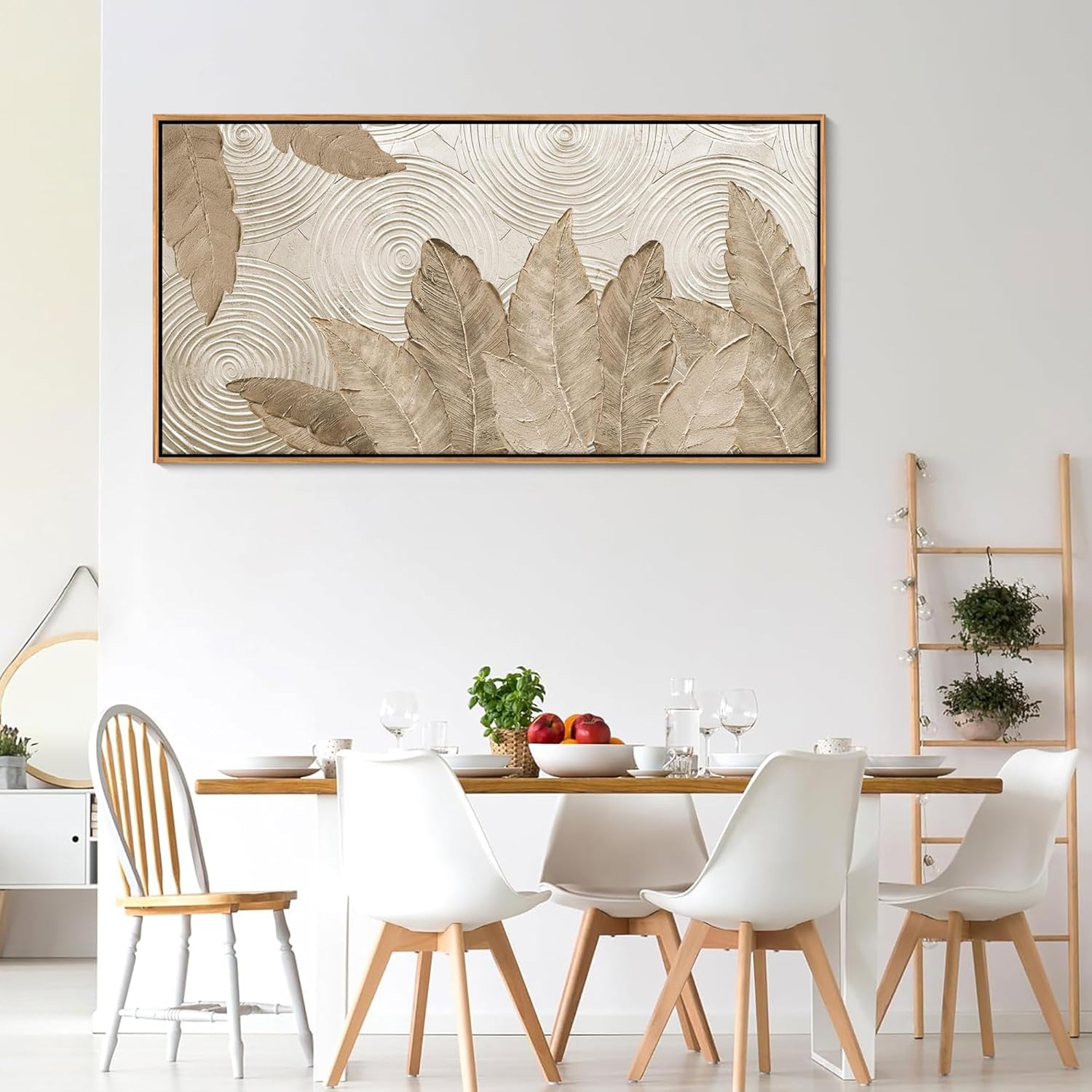 - Boho Wall Art Size : Measuring 24×48 inches, this large framed artwork fits perfectly in a variety of spaces, whether above a bed, in the living room, or as a focal point in an entryway. Its neutral tones blend effortlessly into any room design, adding a touch of sophistication.