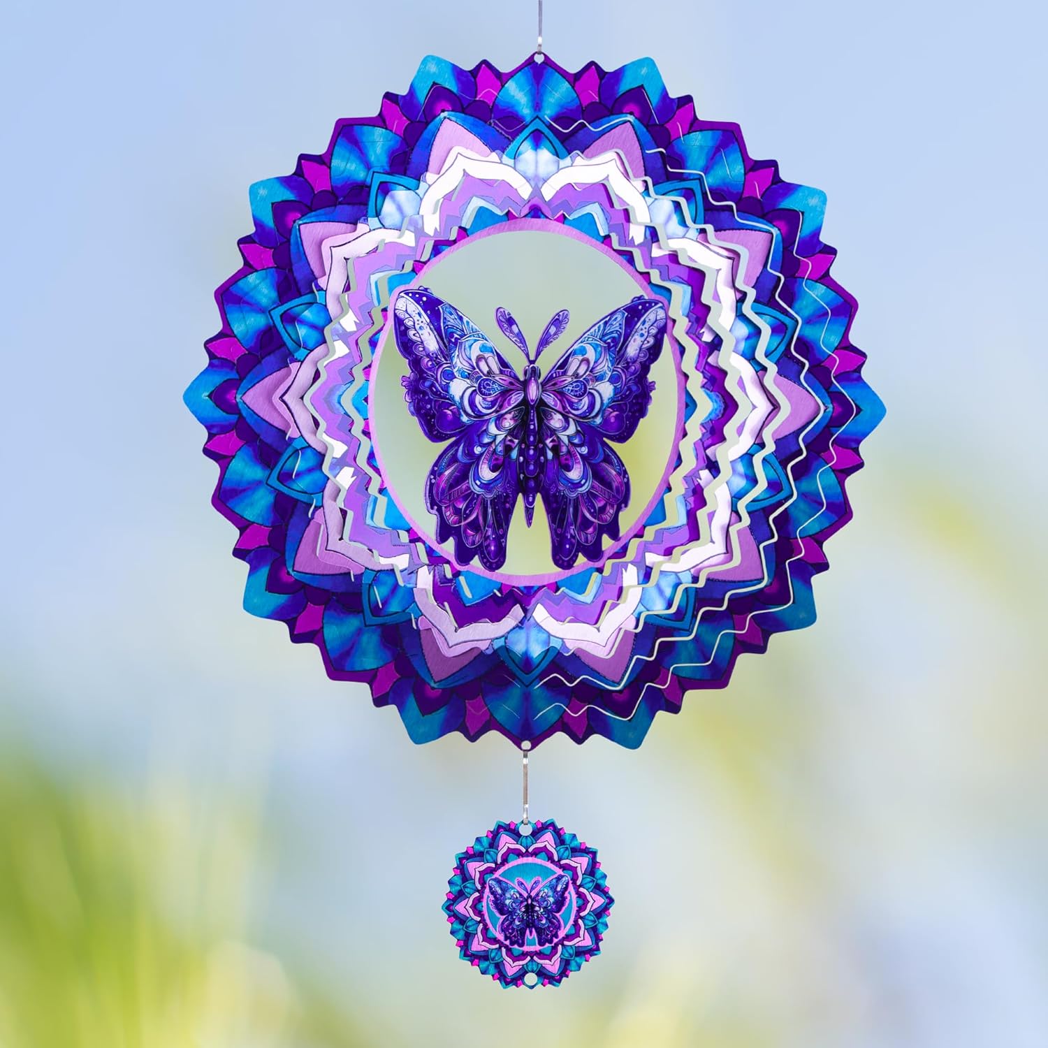 - 【Product features】: The wind spinner is the unique flow of light surface design, As the breeze blows, it rotates freely, creating a glittering visual display, bright colors and 3D patterns have a good visual effect.