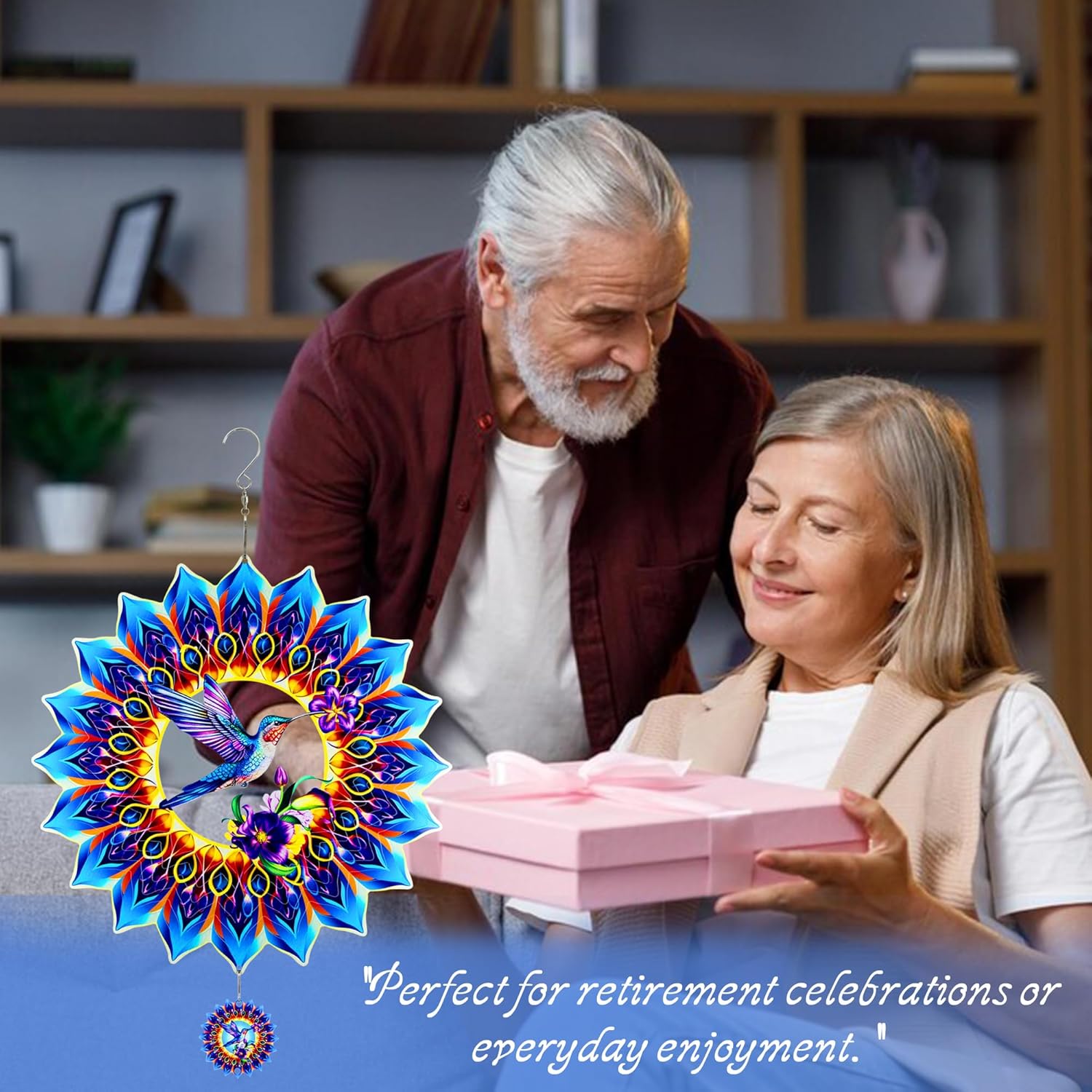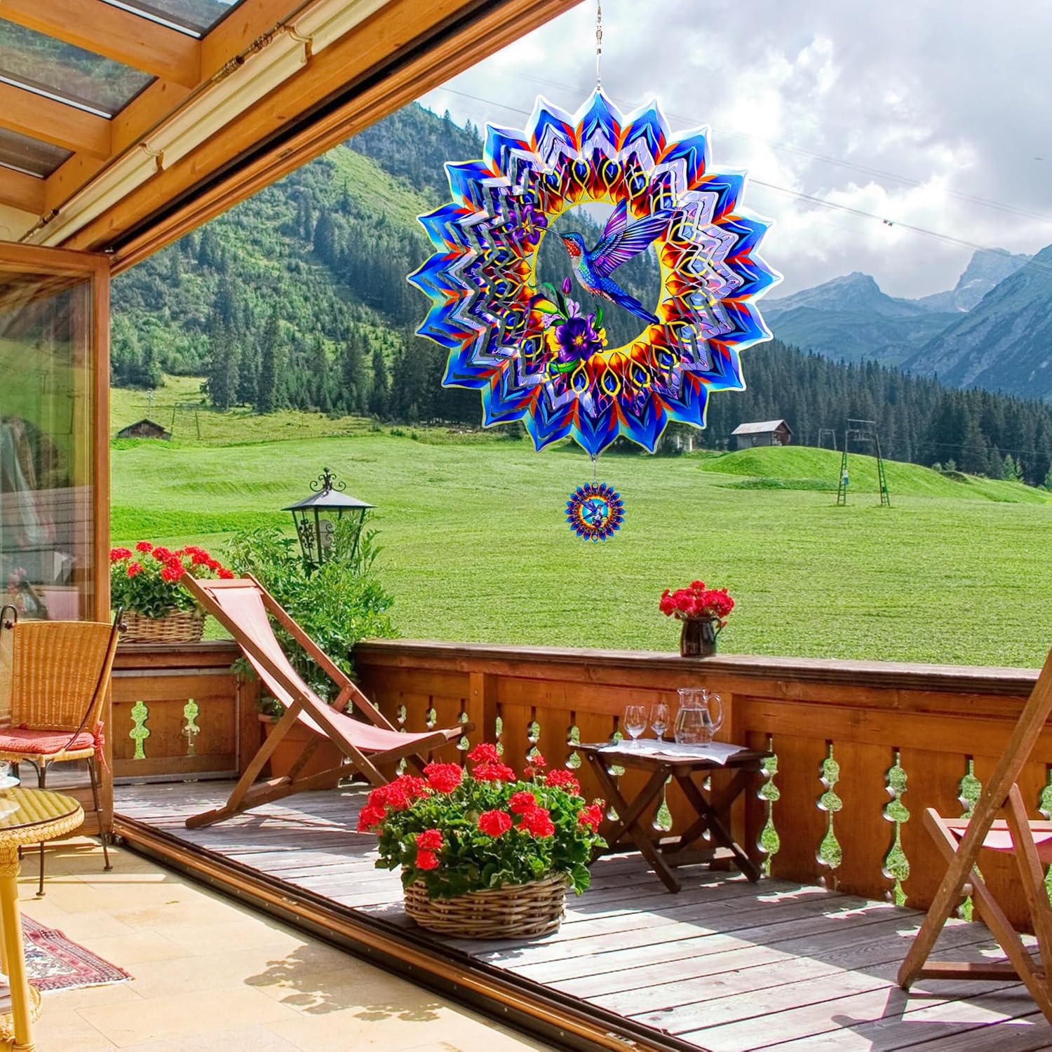 Hummingbird Wind Spinner,Hanging Wind Spinners Outdoor for Garden Decoration,12 inch 3D Stainless Steel Wind Sculpture for Indoor/Outdoor Decor
