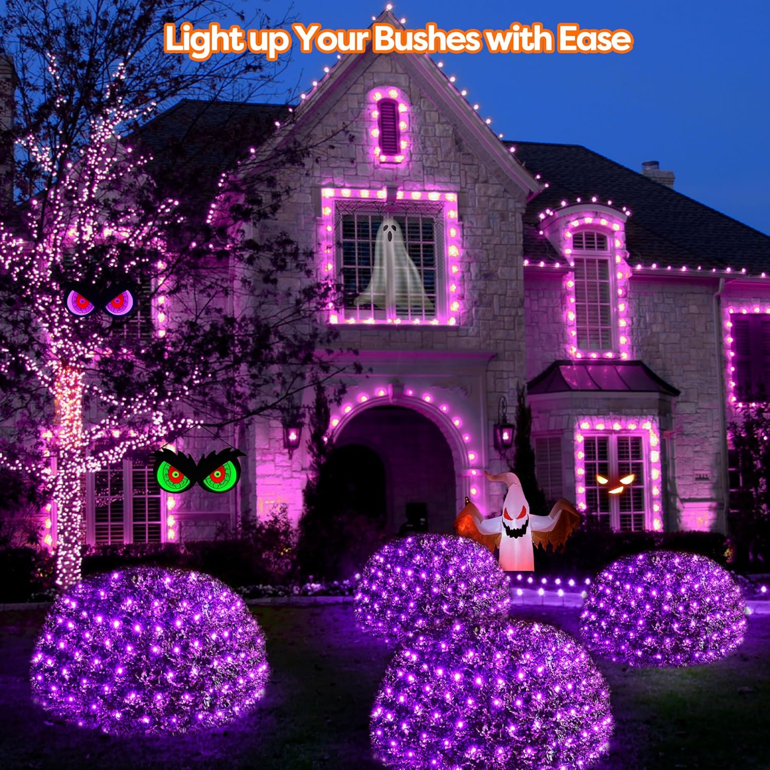 - Make Halloween Decoration Faster: Compared with traditional single string lights, our solar mesh purple string lights can greatly save our Halloween decoration time. Just unfold it gently and spread it on the bushes, grass, trees, and fences that need to be decorated, it's done! Without a lot of circles like a single string light.