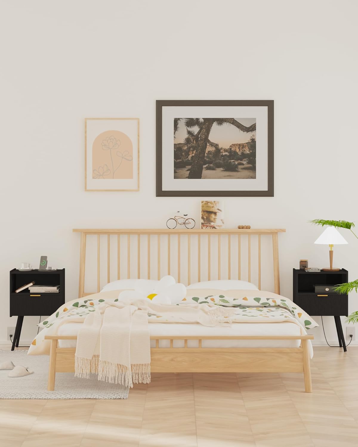 Nightstand,Modern Bedside Table with Storage Drawer and Open Wood Shelf, Accent Night Stand with Solid Wood Legs for Living Room, Bedroom and Small Spaces,Easy Assembly (Black-Outlet)
