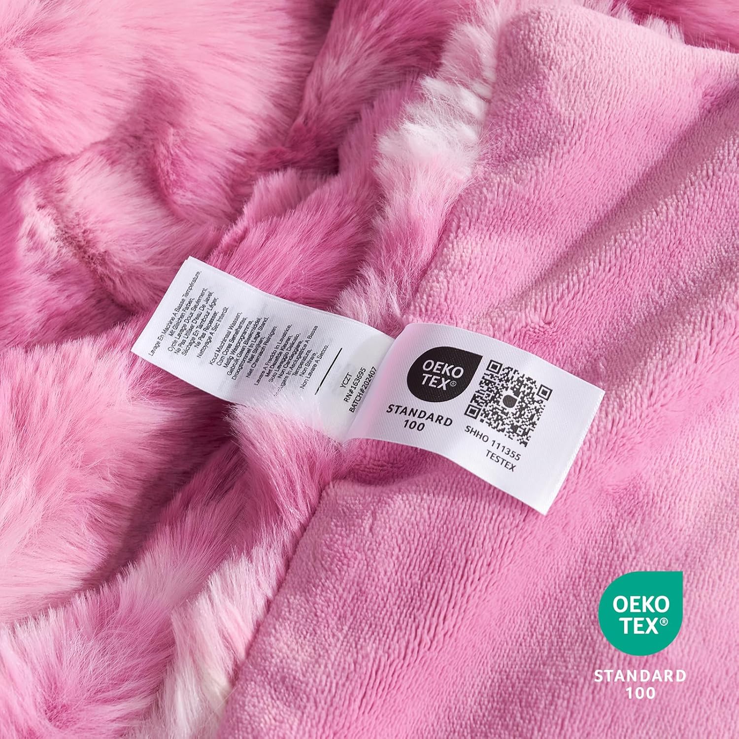 Cozy Bliss Faux Fur Throw Blanket for Couch, Fuzzy Soft Plush Thick Bubble Blanket for Sofa Bedroom Living Room, 50 * 60 Inches Tie Dye Pink