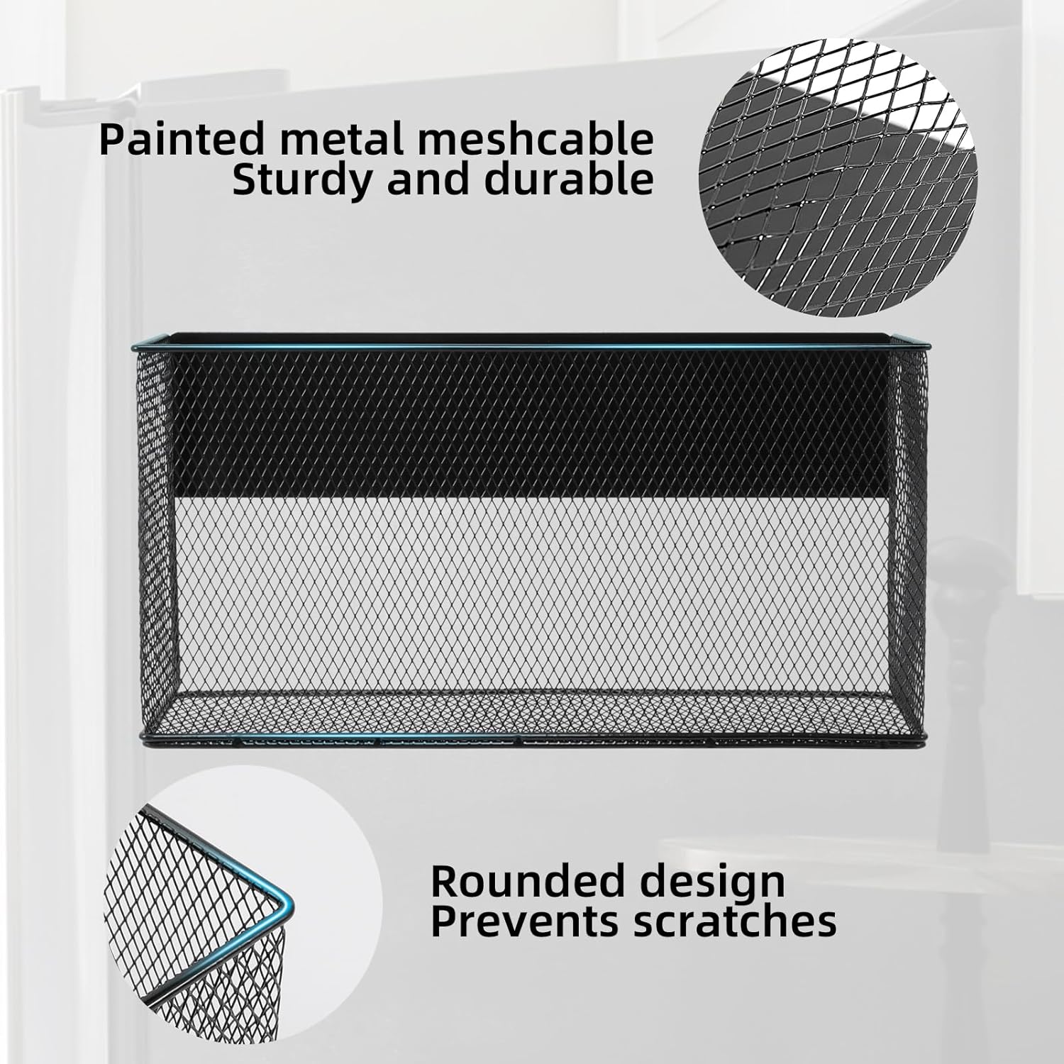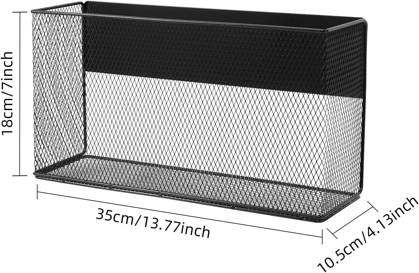 - Multi-purpose: The magnetic basket for fridge measuring 13.77" × 4.13" ×7.08 inches can not only store paper, magazines and newspapers, but also office supplies such as markers, pens, scissors, etc. It can also store condiments, preserving film, cereal boxes and other kitchen supplies
