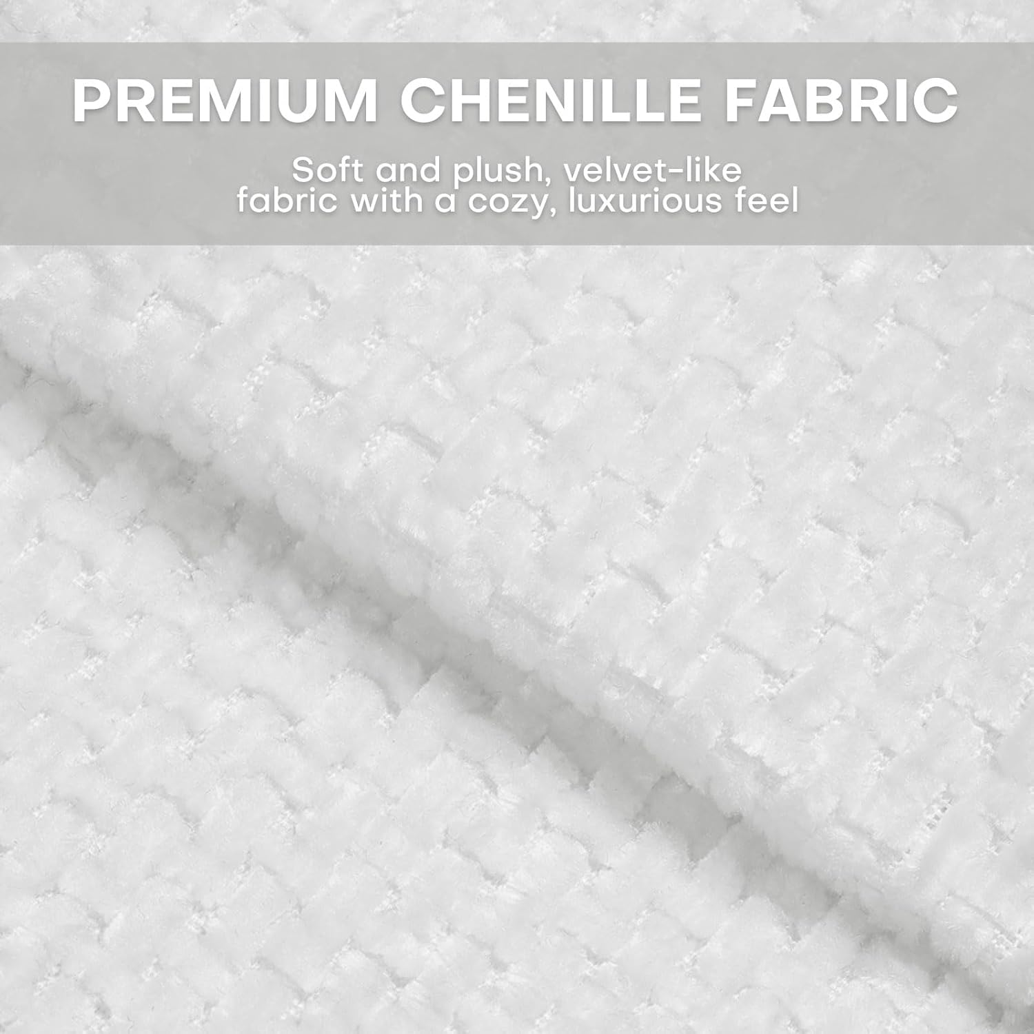 Chenille Fabric Accent Chairs Set of 2, Upholstered Armchair with Solid Wood Legs, Modern Living Room Accent Chair, Comfy Single Sofa Reading Club Chair for Bedroom Reception Lounge, White