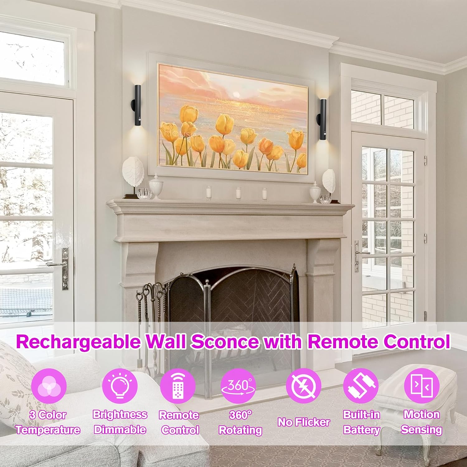 - 【Versatile Indoor Lighting】LYTARA rechargeable wall sconces battery operated are a multi-functional solution, serving as wall sconces, night light, and flashlights. Ideal for various indoor applications such as ambient and mood lighting, wall decor, room decor, reading, study, and practical use in bedrooms, living rooms, bathrooms, hallways, dorm rooms, stairways, cabinets, closets, toilets, and art galleries. The cordless wall lamp, magnetically attached to the mounting base, easily transforms into a flashlight or emergency light, providing flexible and efficient illumination for your diverse needs.