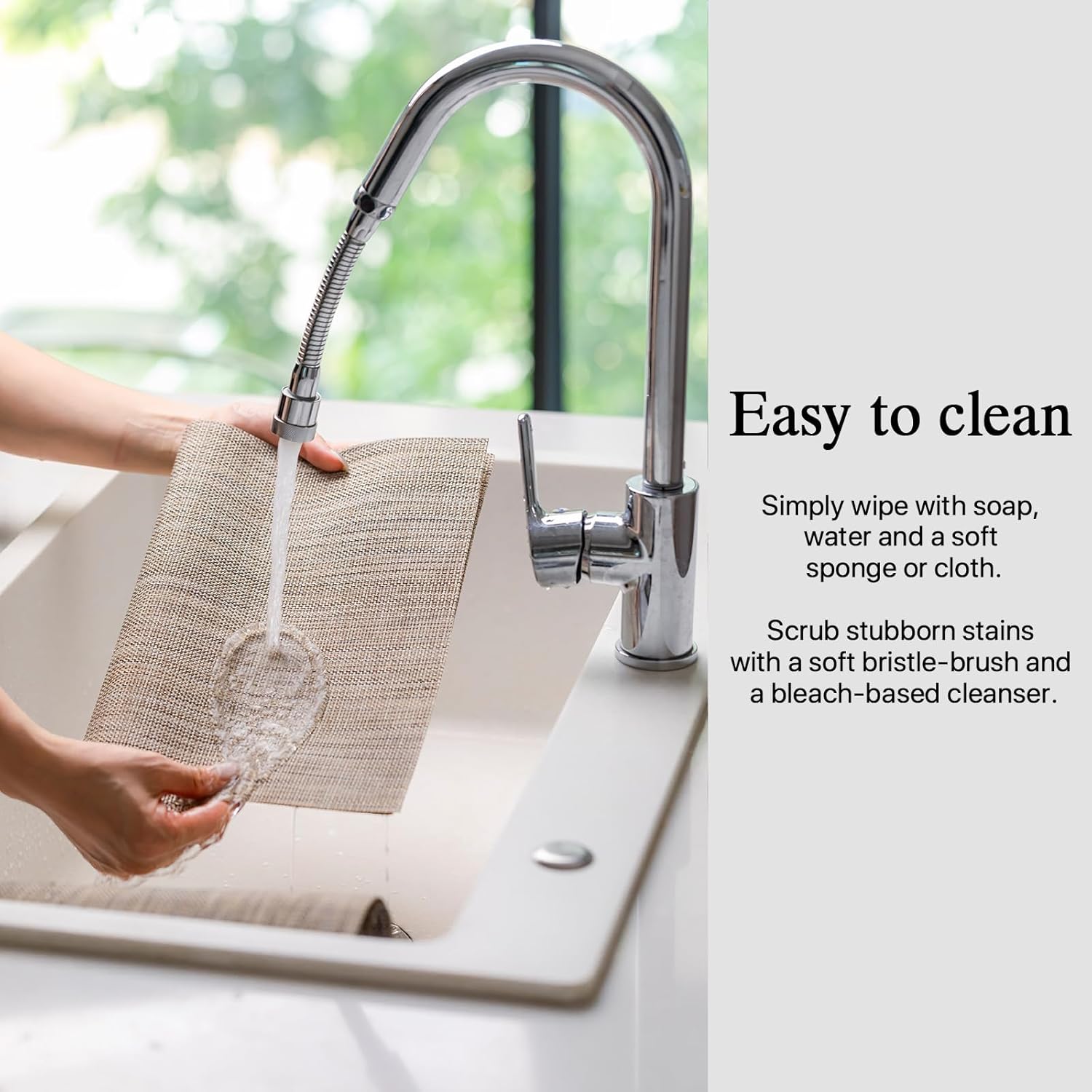 - Premium Quality and Durability: Onebento placemats are made from a high-quality blend of 70% PVC and 30% polyester, offering exceptional durability and aesthetic. This combination ensures long-lasting use and superior protection for your dining table, making it a perfect choice for quality-required consumers.