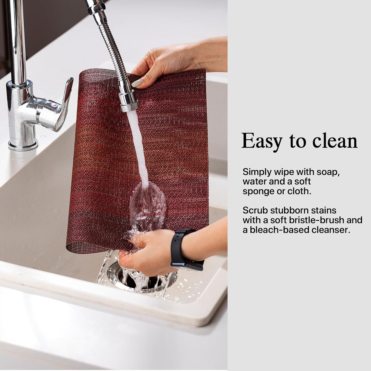 Placemats Set of 6 - Easy Clean Woven Vinyl Placemats for Dining Table, Indoor/Outdoor Place Mats, Washable PVC Table Mats(Pomegranate Parade)