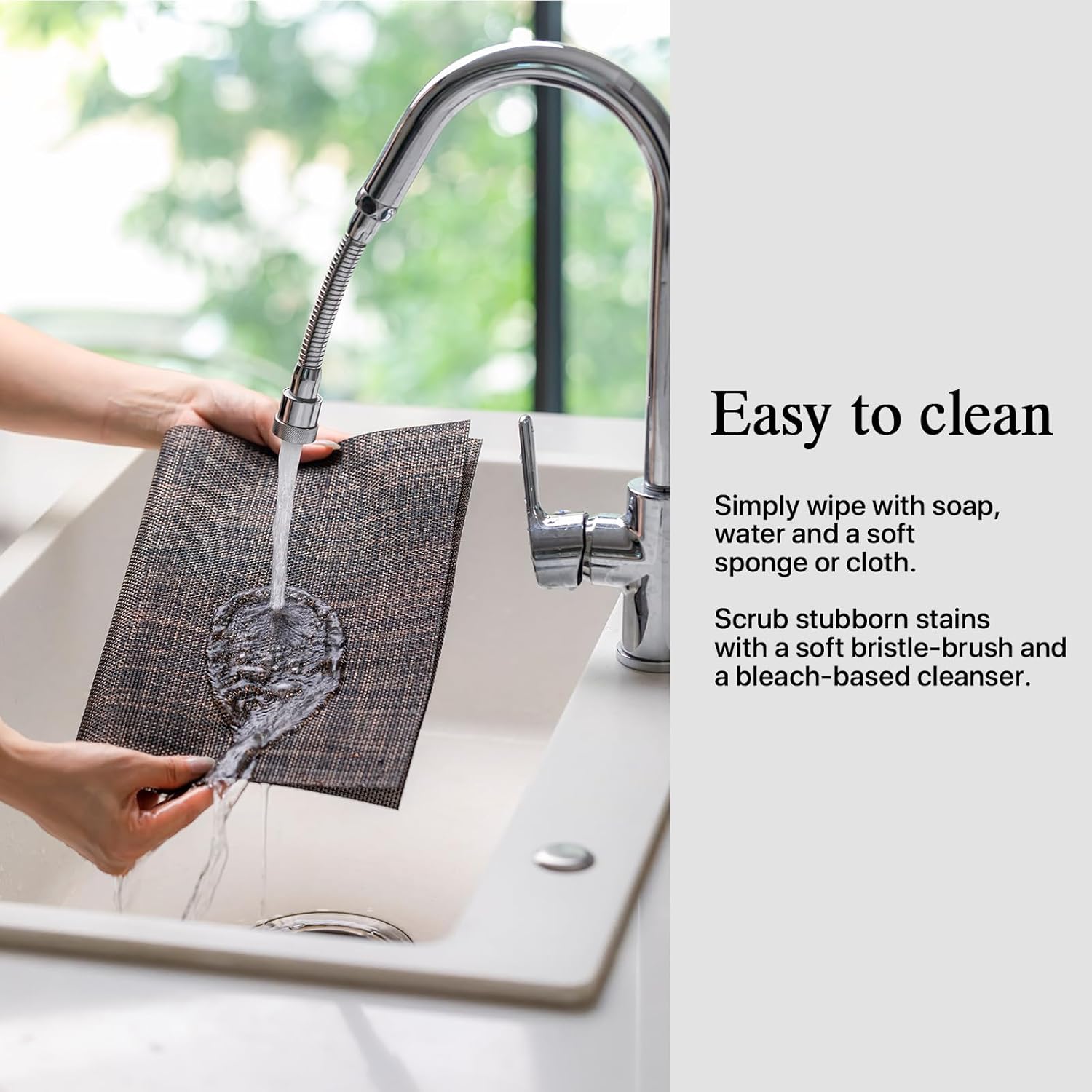 Placemats Set of 4 - Easy Clean Woven Vinyl Placemats for Dining Table, Indoor/Outdoor Place Mats, Washable PVC Table Mats(Black/Brown)