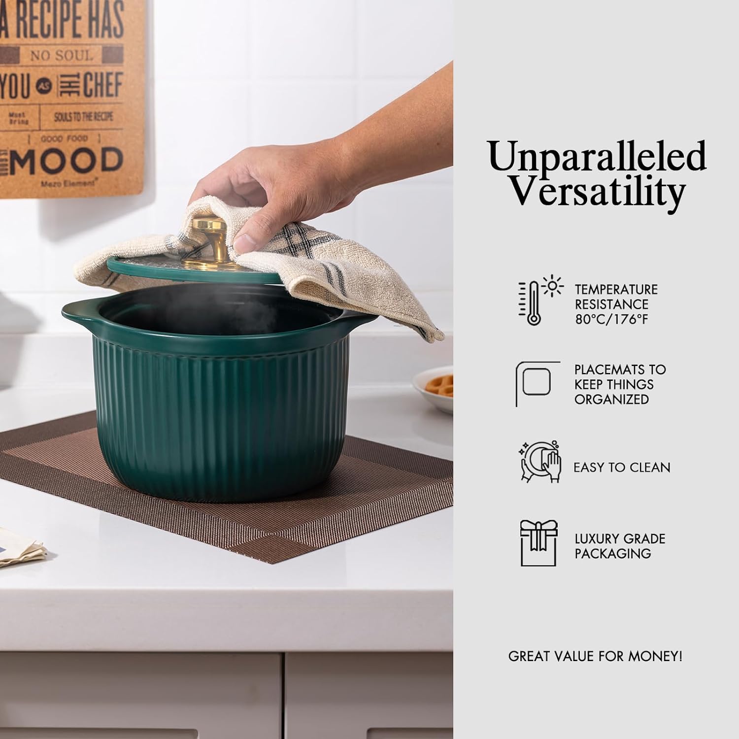 - Premium Quality and Durability: Onebento placemats are made from a high-quality blend of 70% PVC and 30% polyester, offering exceptional durability and aesthetic. This combination ensures long-lasting use and superior protection for your dining table, making it a perfect choice for quality-required consumers.