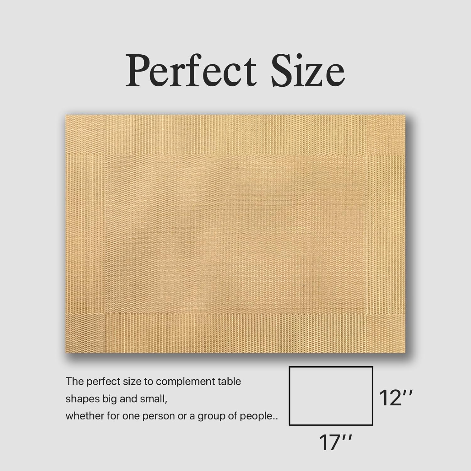 Placemats Set of 6 - Easy Clean Woven Vinyl Placemats for Dining Table, Indoor/Outdoor Place Mats, Washable PVC Table Mats(Gold Cube)