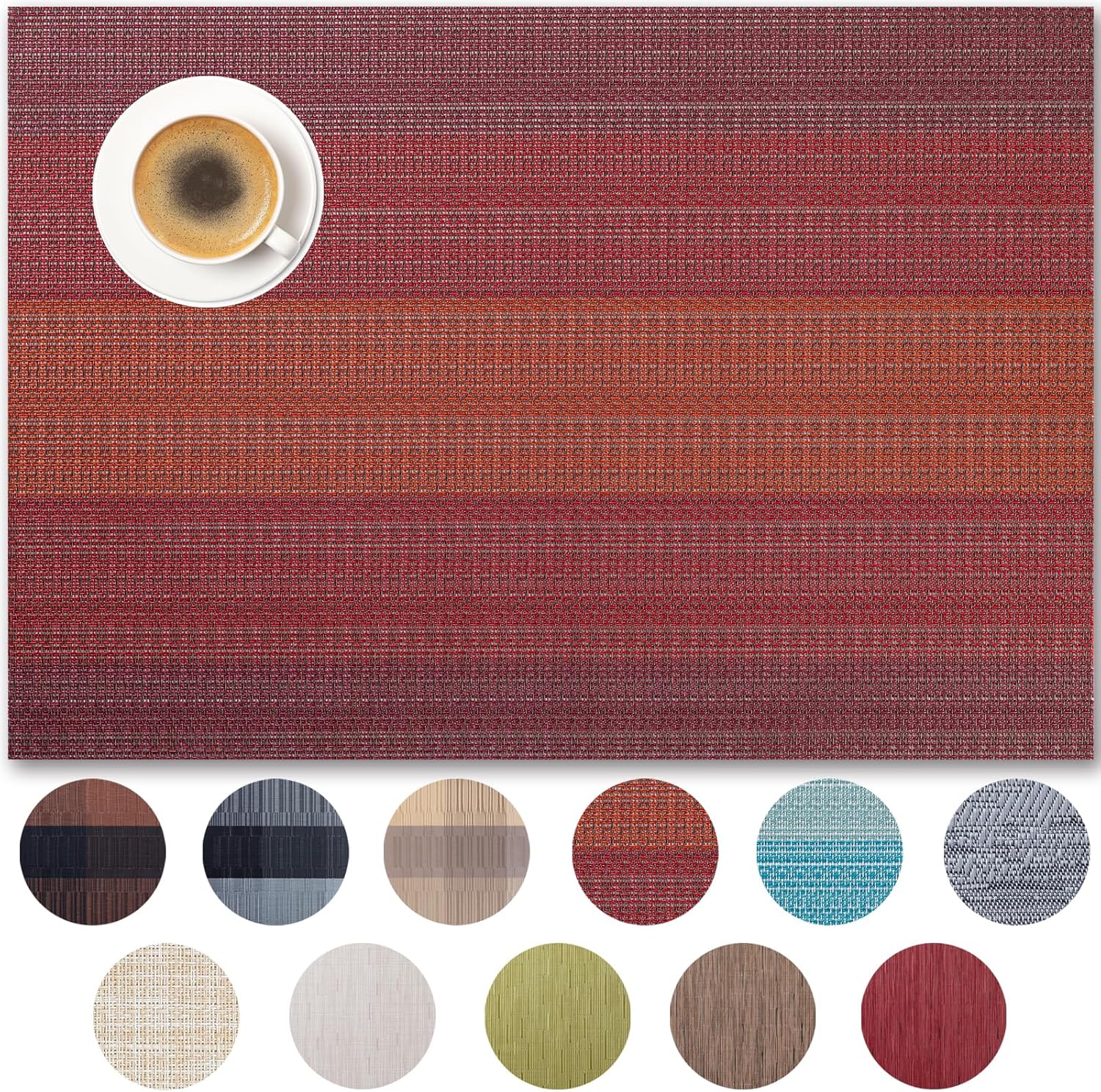 Placemats Set of 8 - Easy Clean Woven Vinyl Placemats for Dining Table, Indoor/Outdoor Place Mats, Washable PVC Table Mats(Pomegranate Parade)