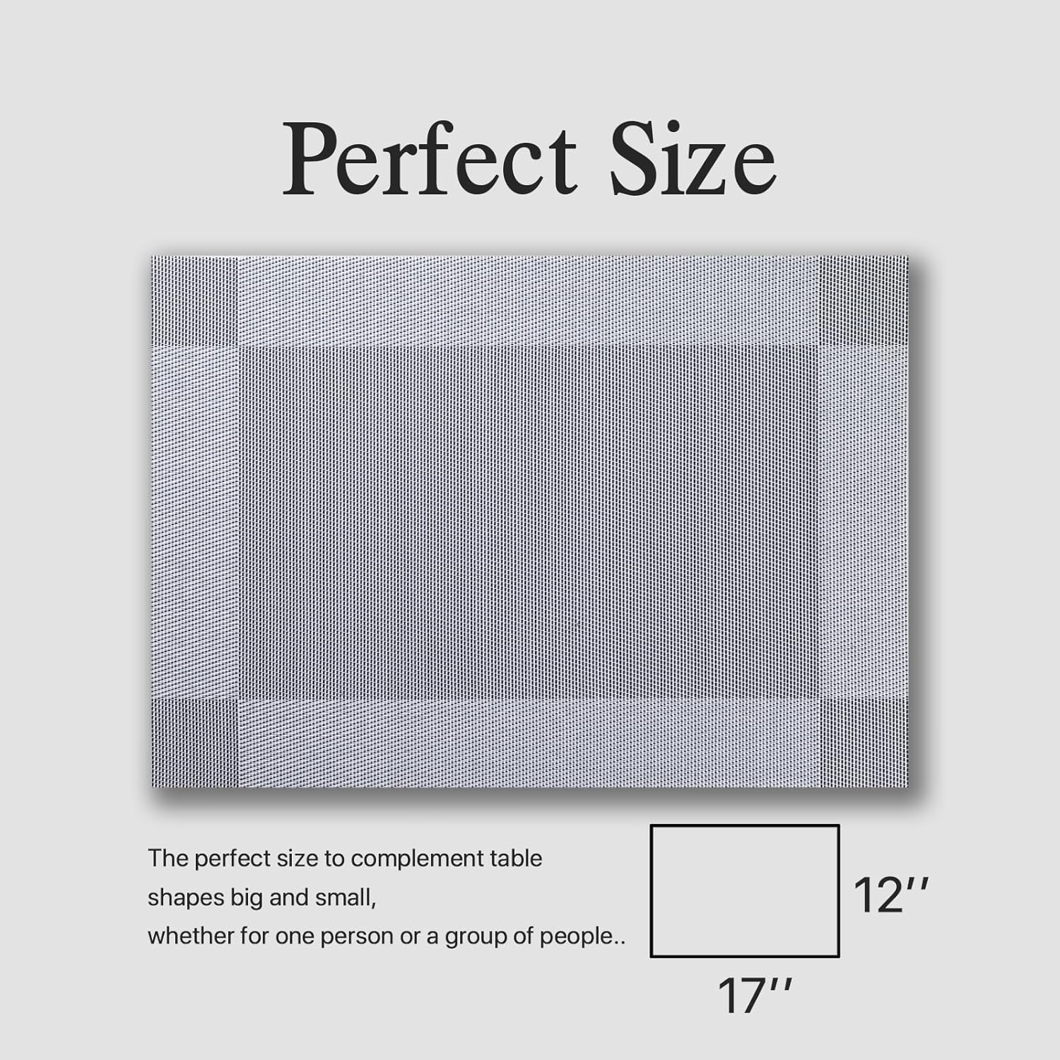 Placemats Set of 6 - Easy Clean Woven Vinyl Placemats for Dining Table, Indoor/Outdoor Place Mats, Washable PVC Table Mats (Silver Cube)