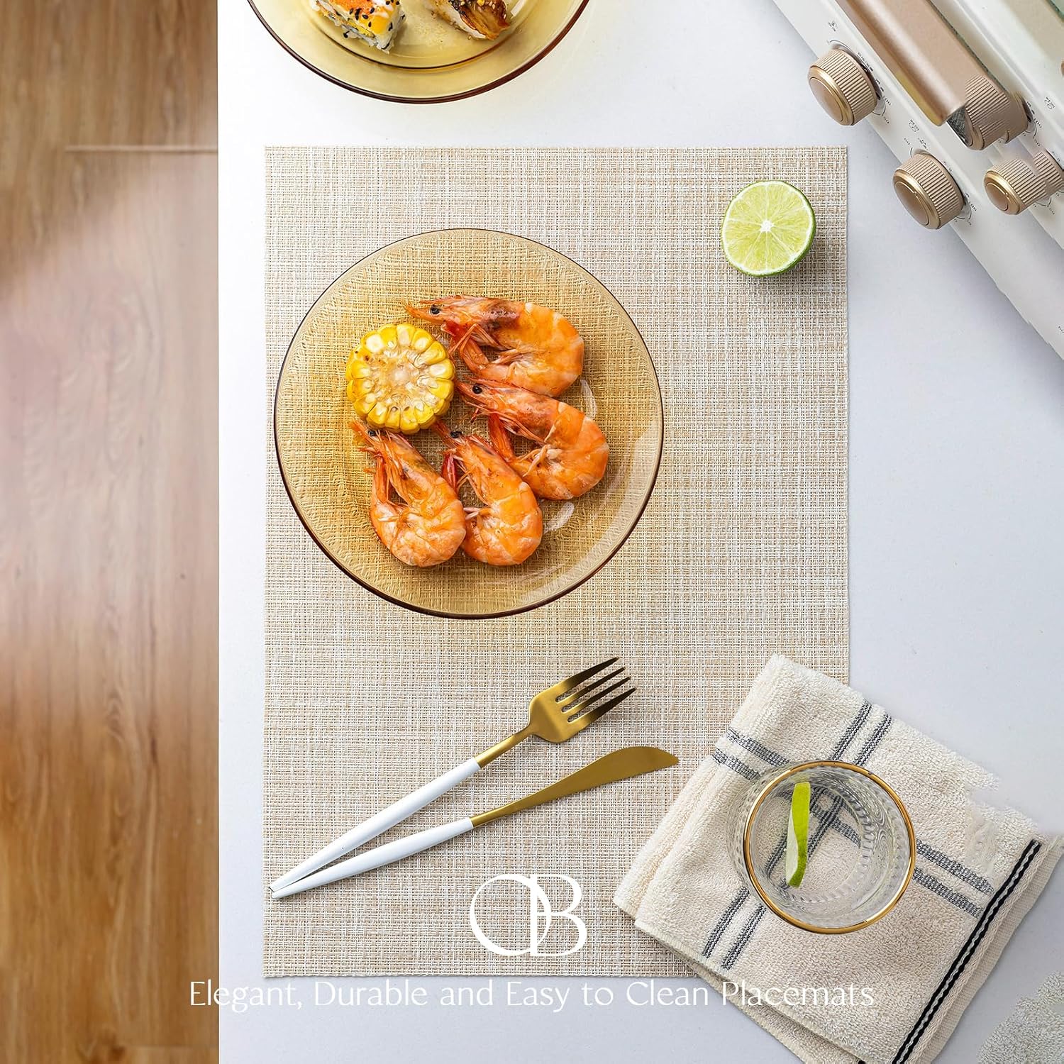 Placemats Set of 4 - Easy Clean Woven Vinyl Placemat for Dining Table, Indoor/Outdoor Place Mats, Washable PVC Table Mats(Beige)