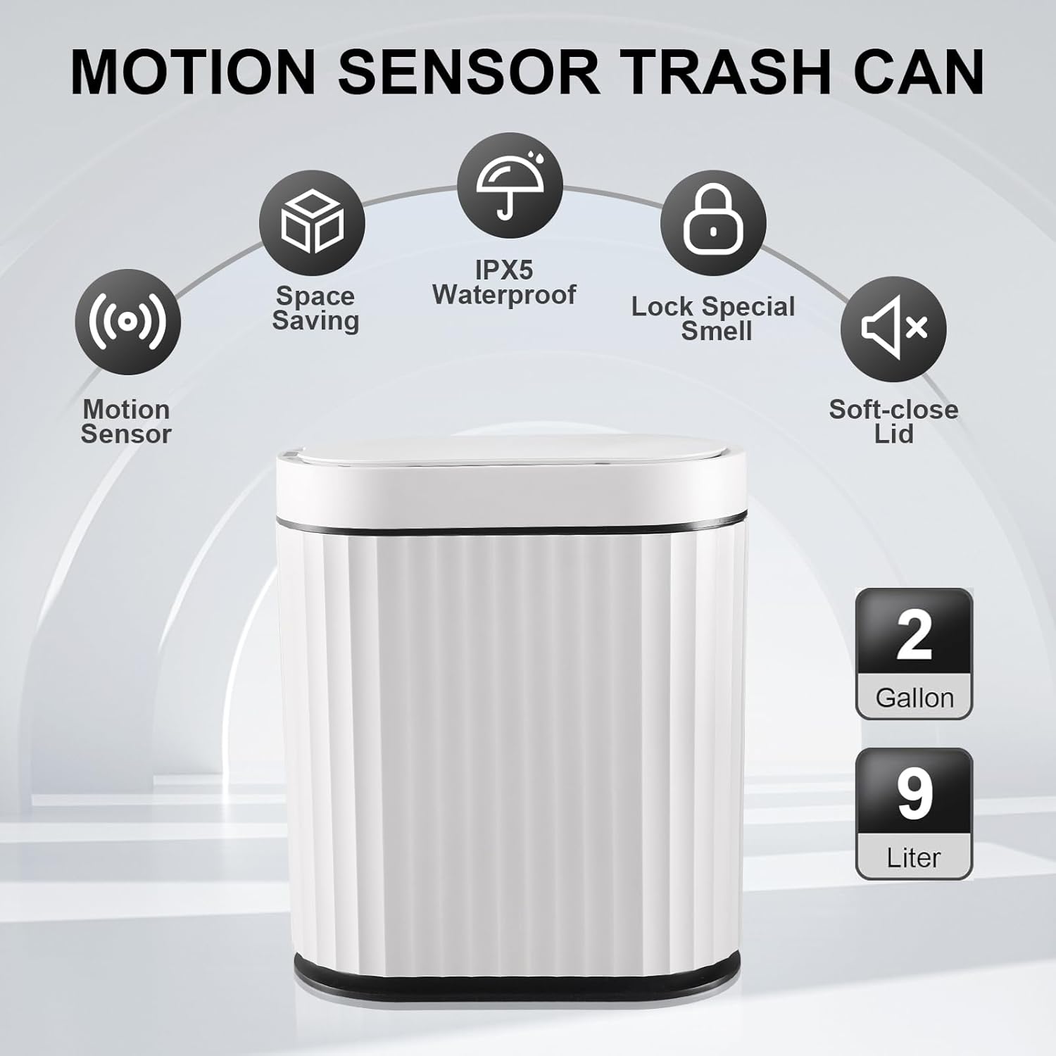 - Smart Sensor - The 2 Gallon White and Black Sensor Trash Can features infrared sensing technology, allowing for effortless, hands-free lid operation as it automatically opens and closes when detecting motion