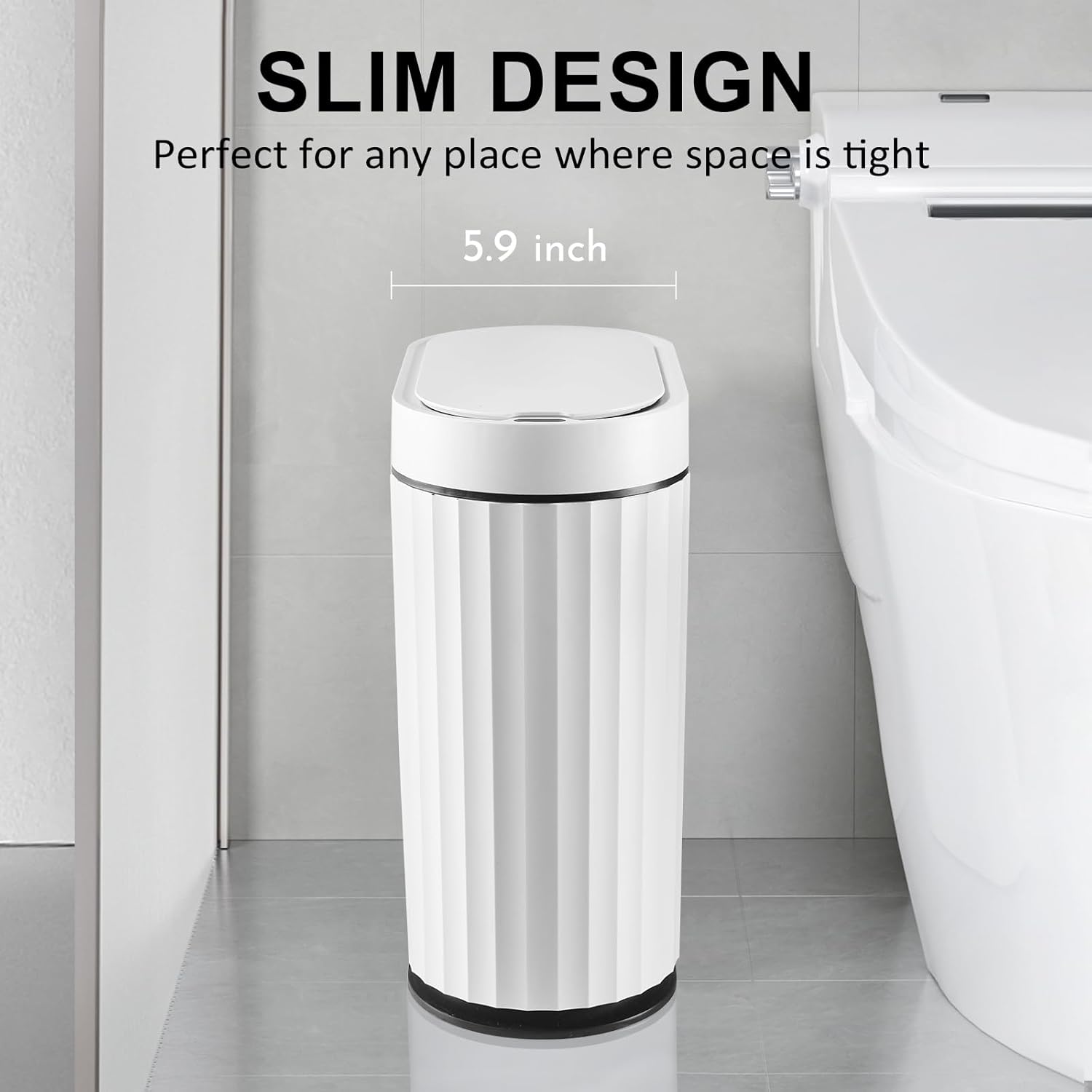 ELPHECO Bathroom Trash Can with Lid 2 Gallon Small Sensor Garbage Can, 9 Liter Slim Smart Trash Bin, Waterproof Automatic Wastebasket, Narrow Plastic Garbage Bin for Bathroom, Black and White
