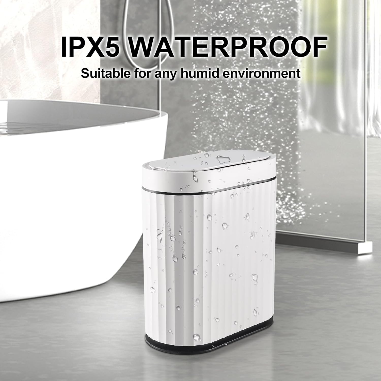 - IPX5 Waterproof - With an IPX5 waterproof rating, this automatic garbage can is well-suited for humid environments like bathrooms, offering resistance to moisture and ensuring long-lasting performance