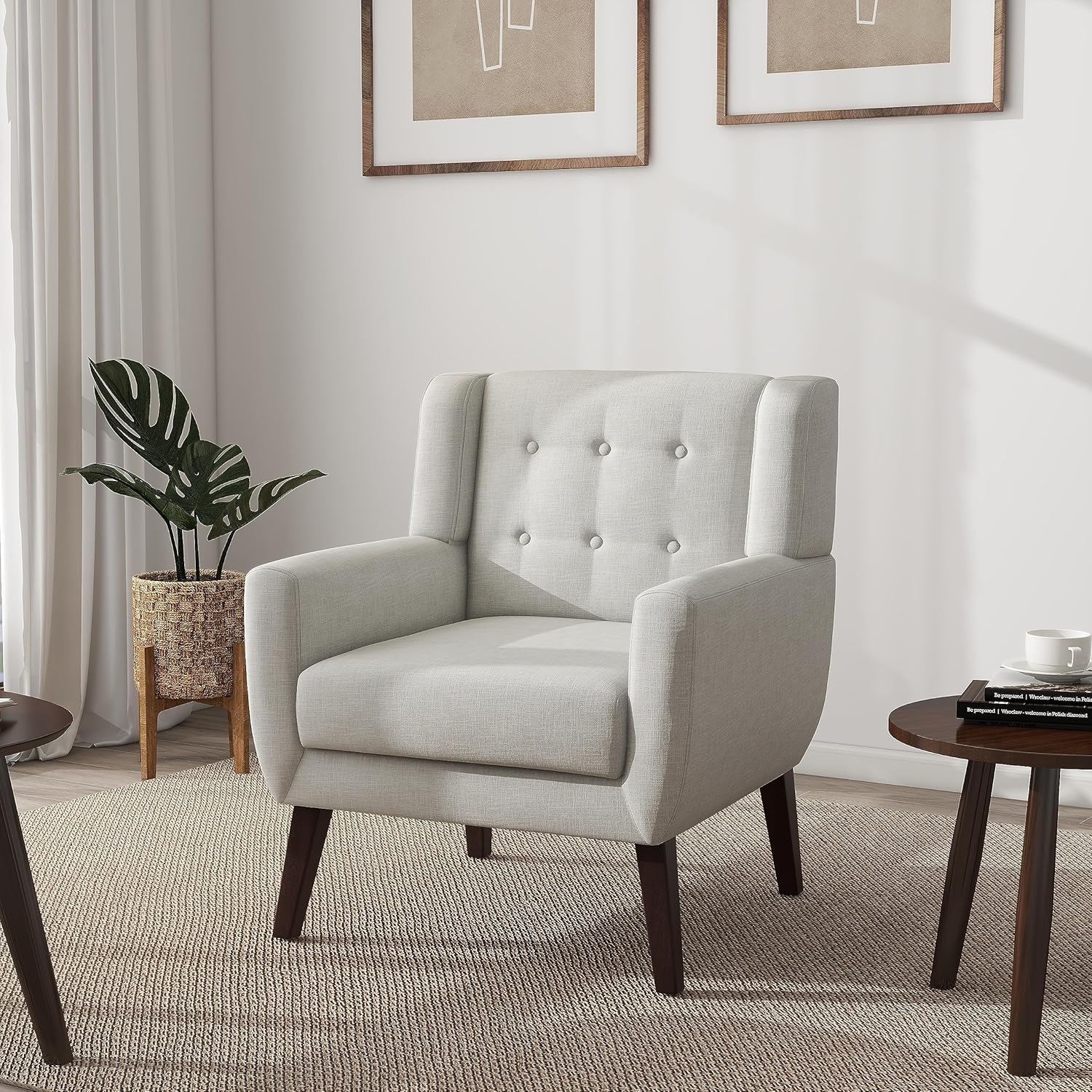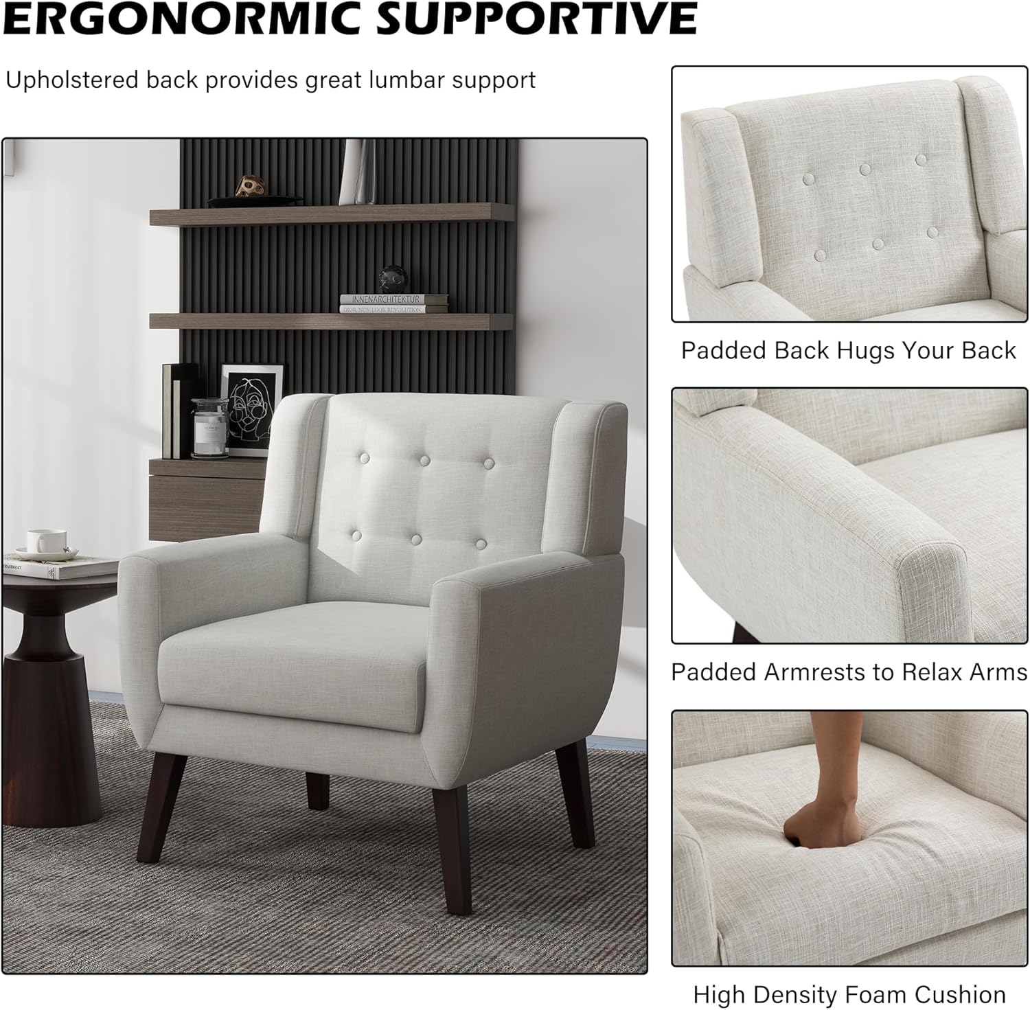 UIXE Accent Chair Modern Upholstered Armchair, Comfy Living Room Arm Chairs Mid Century Single Sofa Reading Side Seat for Bedroom, Home Office - Beige
